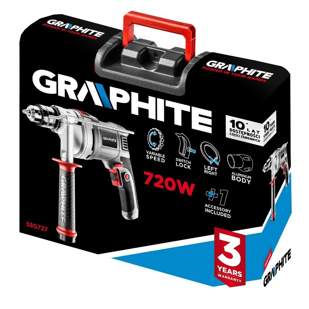 Drilling machine, screw (drill), with percussion, 720 W, chuck 0-13 mm, Graphite