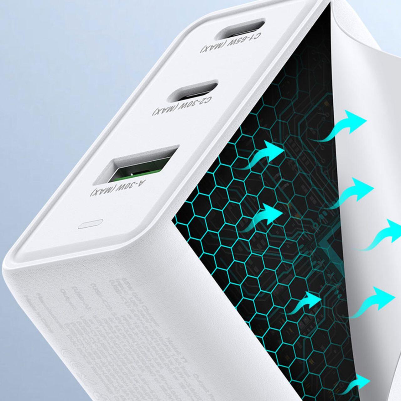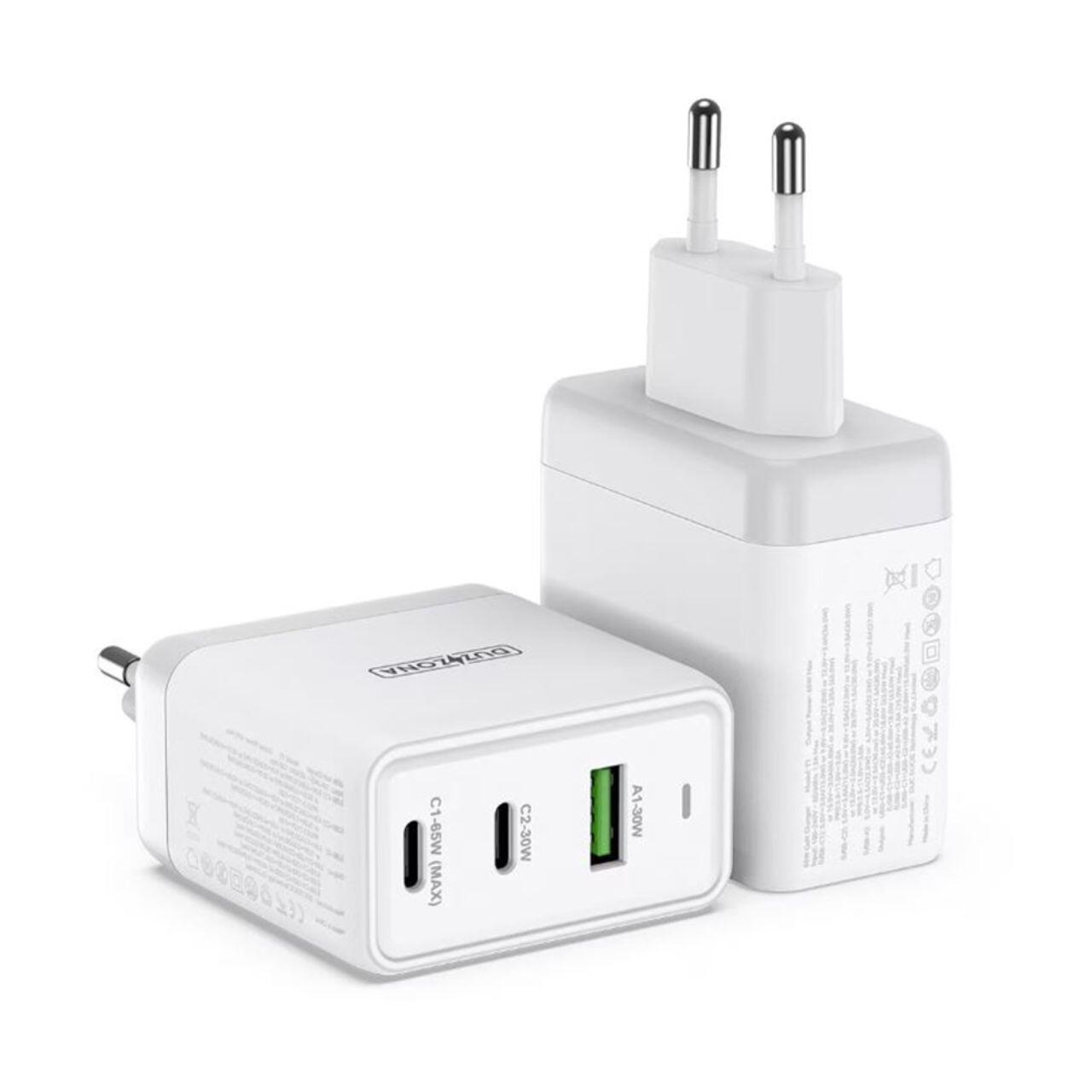 GaN Fast Charging USB Network Charger, 2x Type-C from Duzzona, offers fast charging, being equipped with two USB-C charging ports and one USB-A port, the charger offers a maximum output power of 65 W to charge your devices much faster. p>