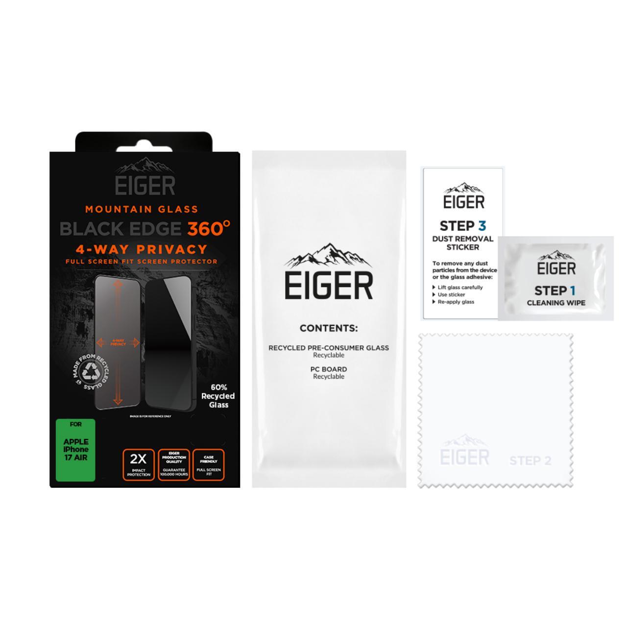 Eiger Privacy Mountain Edge 360 GRS iPhone Air Black Glass Film