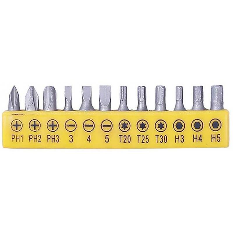 1 x magnetic support for tips/bits & nbsp; 12 tips/bits (PH1 , Ph2, PH3, PL3, PL4, PL5, T20, T25, T30, H3, H4, H5)