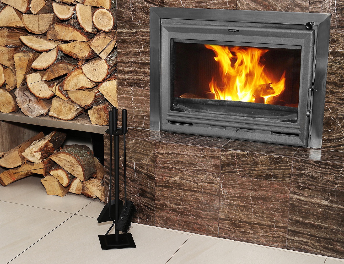 Fireplace accessories set, 3-piece support, steel, black, 54 cm