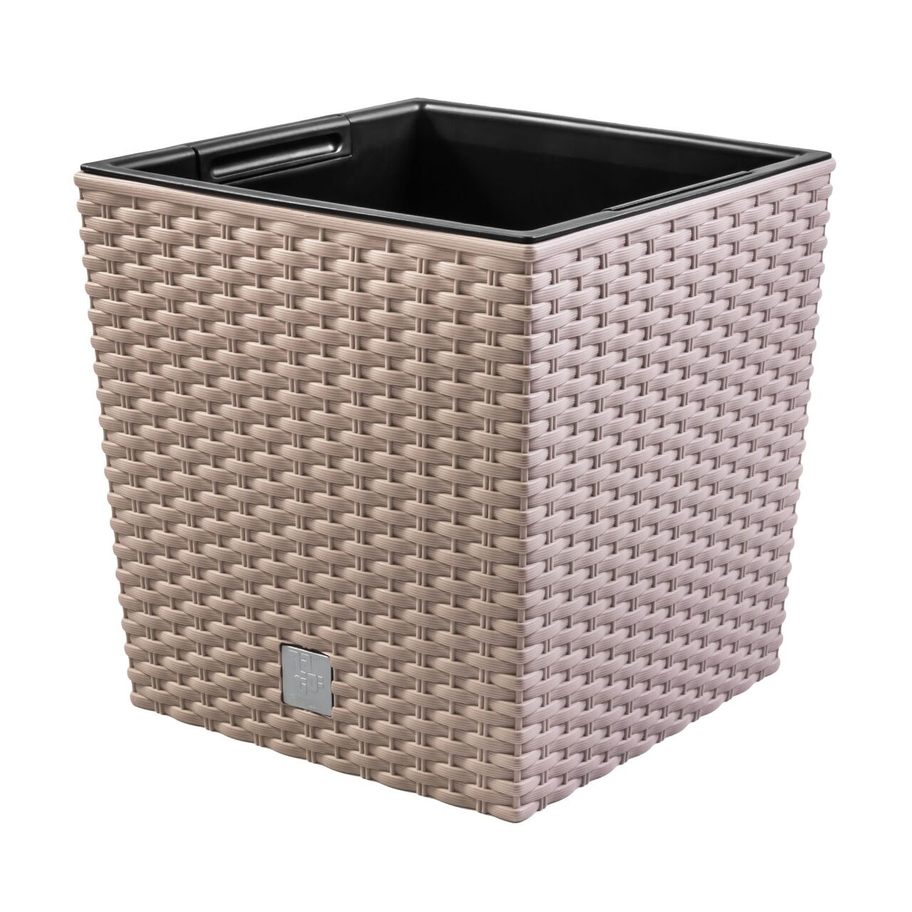 flower pots, prosperplast, rato low, square, 32 l, rattan imitation, coffee, 32x32x32.5 cm
