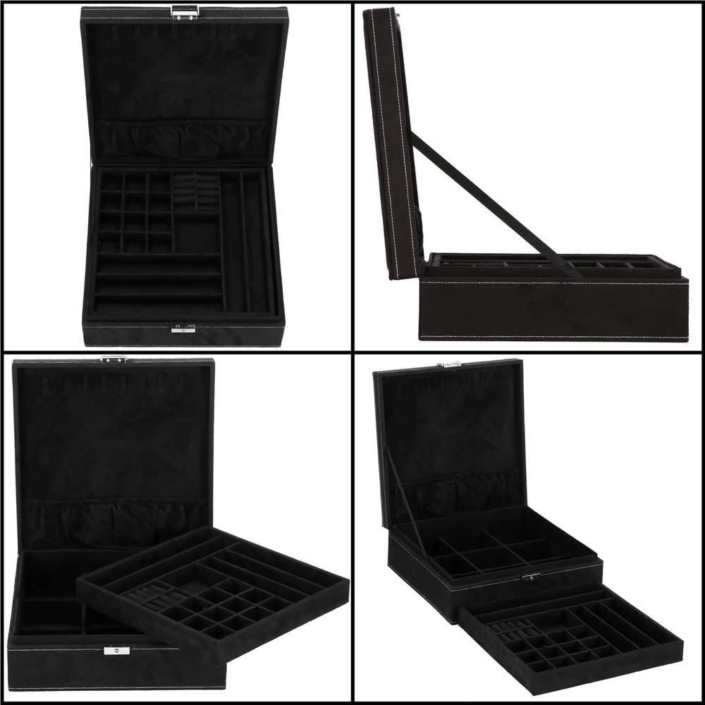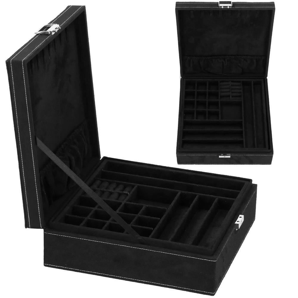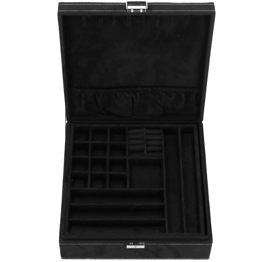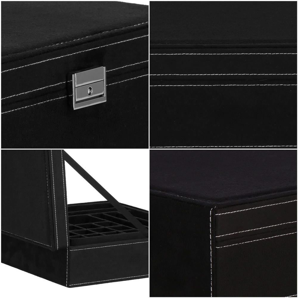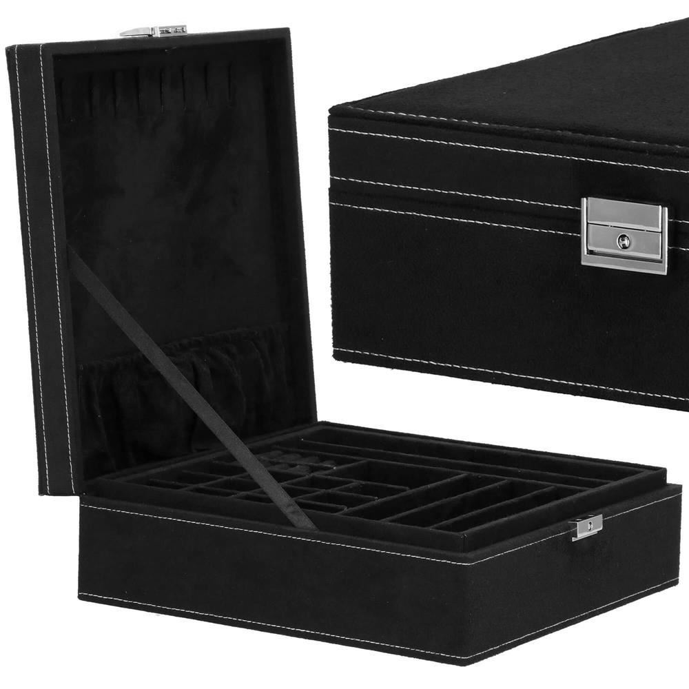 Boîte à bijoux, velours, noir, 26x26x9 cm, Springos