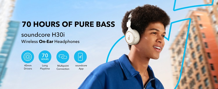 Anker Casque sans fil Bluetooth supra-auriculaire Soundcore H30i Design pliable, basses pures, blanc