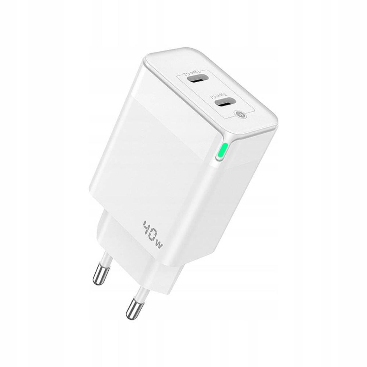 - type : chargeur secteur- puissance : 40W- 2xUSB-C- entrée : 100-240V, 50-60Hz , 1.2A - sortie : 5V/3A, 9V/2,22A, 12V/1,67A- petite taille- LED qui signale le fonctionnement de l'appareil- système anti-surcharge et surchauffe- charge rapide- compatible avec de nombreux smartphones- dimensions : 100 x 100 x 30 mm- poids : 83g- couleur : Blanc< /strong>