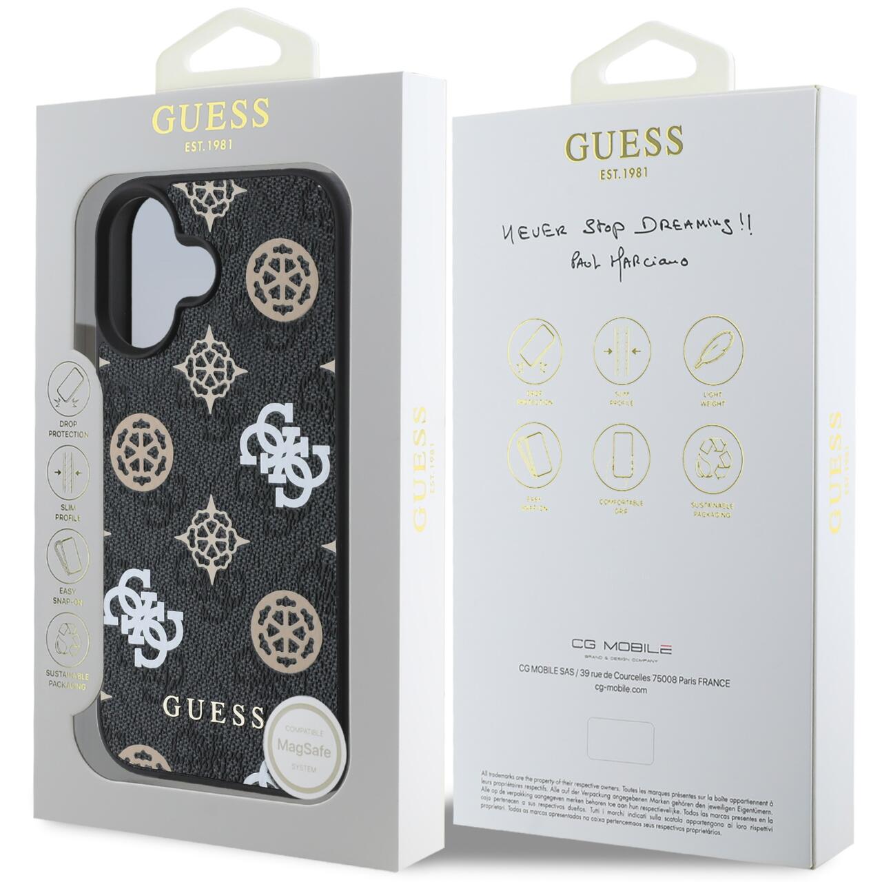 La coque PU 4G Peony MagSafe pour iPhone 16 de Guess offre une excellente protection pour votre téléphone, mais c''est aussi l''accessoire parfait pour votre tenue.