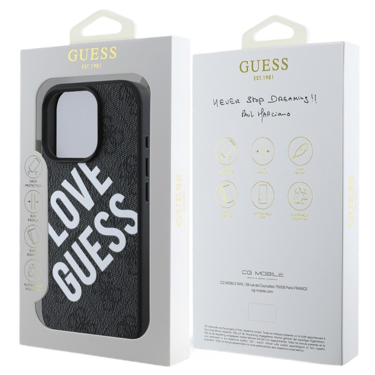 La coque Guess Husa Leather 4G Big Love Logo MagSafe iPhone 16 Pro est fabriquée en similicuir léger et résistant, offrant protection et confort d'utilisation. Grâce à sa forme précise, elle s'adapte parfaitement au téléphone et permet un accès facile à tous les boutons et connecteurs.