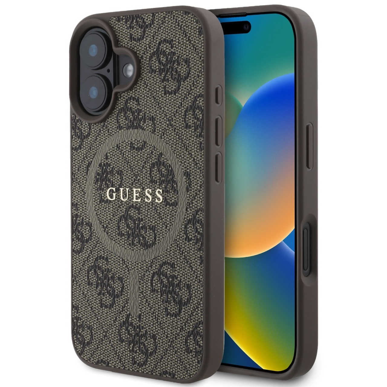 Coque Guess en cuir PU 4G avec anneau coloré MagSafe pour iPhone 16. Son design innovant en polyuréthane durable garantit une résistance à l'usure quotidienne. Les bords extérieurs légèrement surélevés protègent l'écran du téléphone des dommages, tandis que ceux autour de l'objectif de l'appareil photo protègent l'optique des rayures.