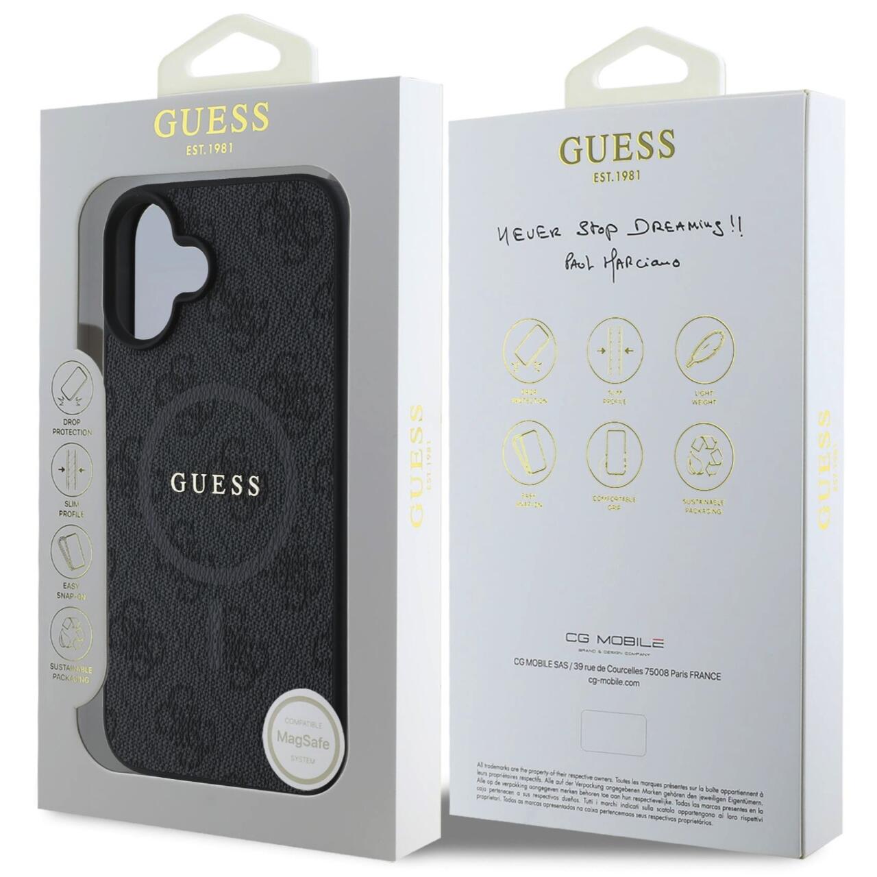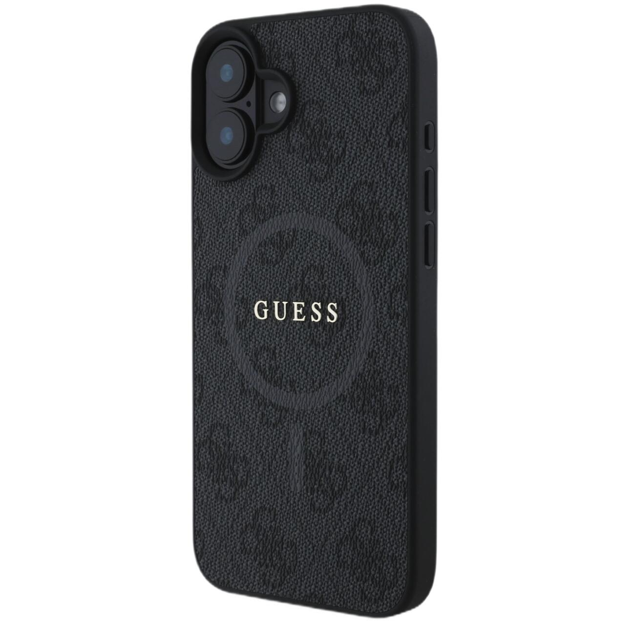 Coque Guess en cuir PU 4G avec anneau coloré MagSafe pour iPhone 16 de Guess. Son design innovant est basé sur un polyuréthane durable qui garantit une résistance à l'usure quotidienne. Les bords extérieurs légèrement surélevés protègent l'écran du téléphone des dommages, tandis que les bords extérieurs surélevés autour de l'objectif de l'appareil photo protègent l'optique des rayures.