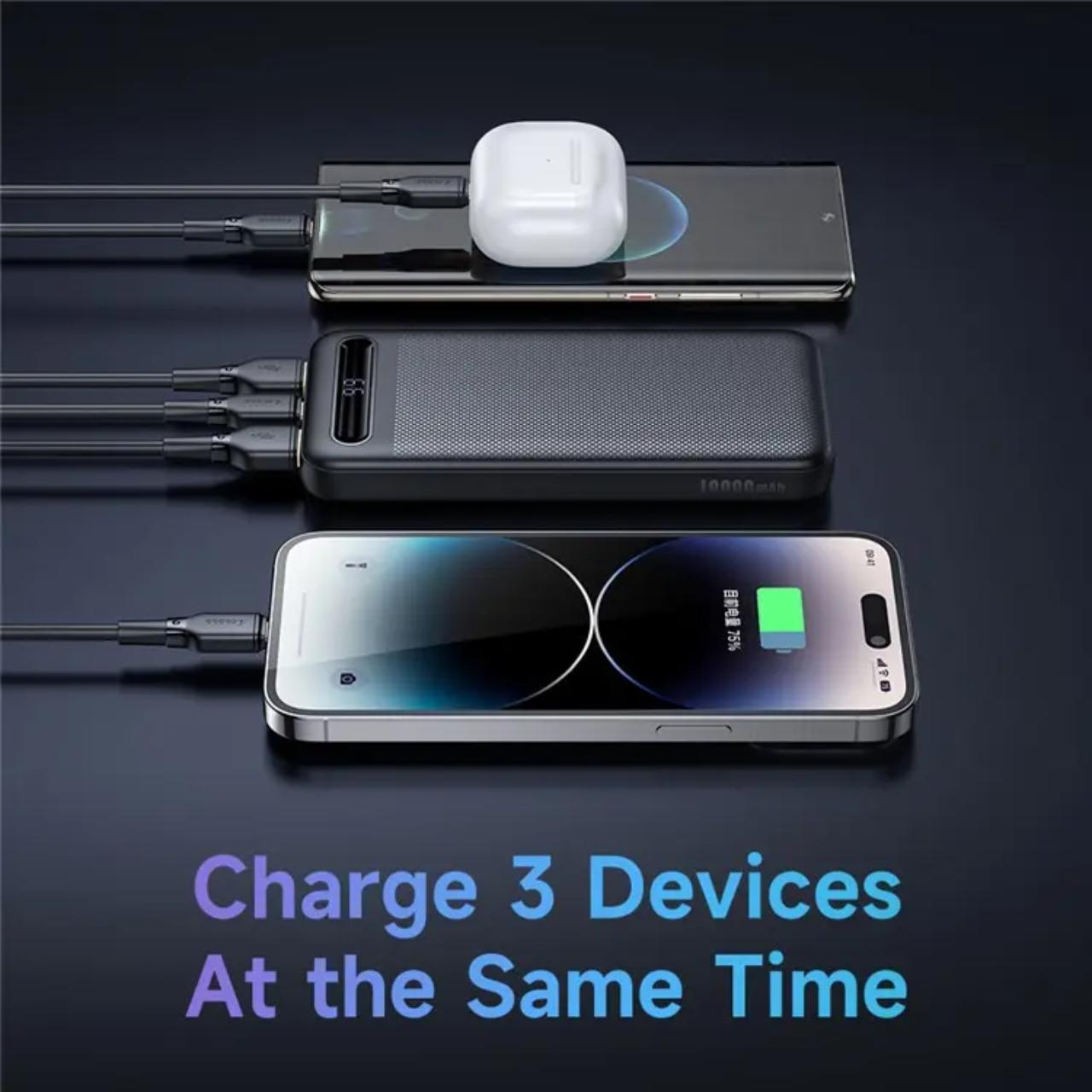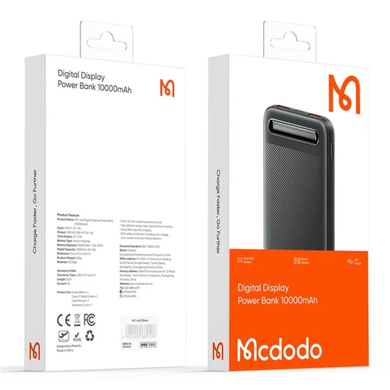 La batterie externe à affichage numérique Star Series de Mcdodo, est une powerbank élégante et bien finie d'une capacité de 10 000 mAh dotée de 2 ports USB-A et 1 port USB-C pouvant charger simultanément 3 appareils.