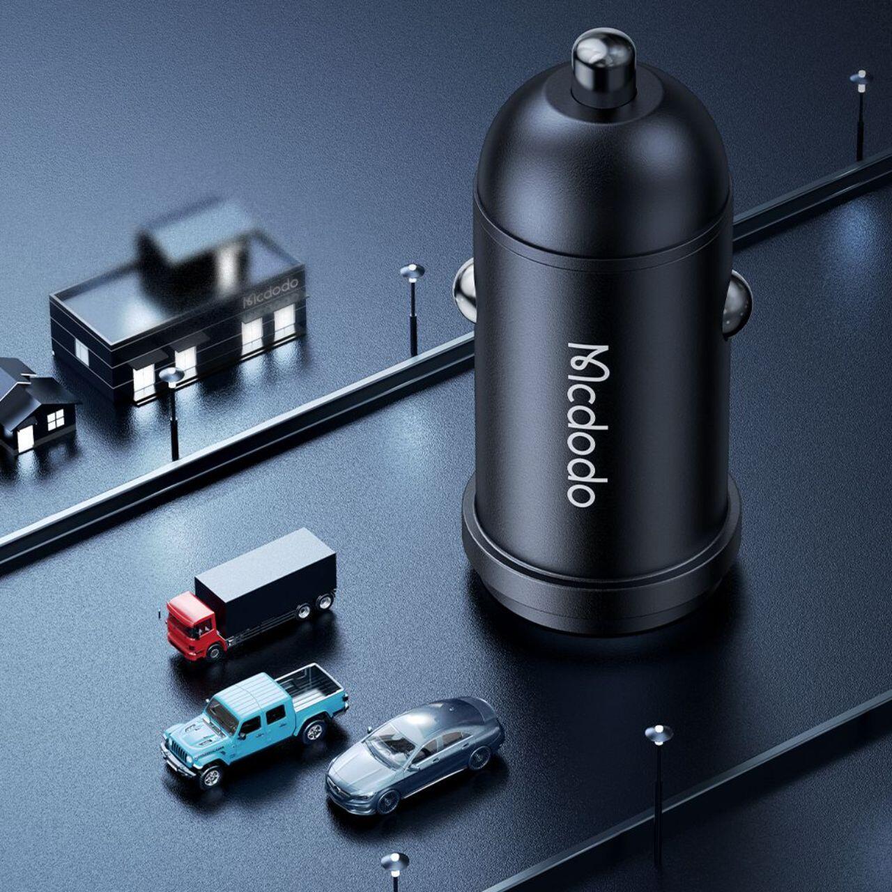 Chargeur de voiture 1xType-C rapide Charging PD 30W de Mcdodo, offre suffisamment d'énergie pour charger rapidement les appareils mobiles grâce au port USB-C disponible. L'aspect classique s'adapte parfaitement à tout type de voiture sans affecter son design, et la qualité de fabrication indique qu'il s'agit d'un appareil solide et durable.