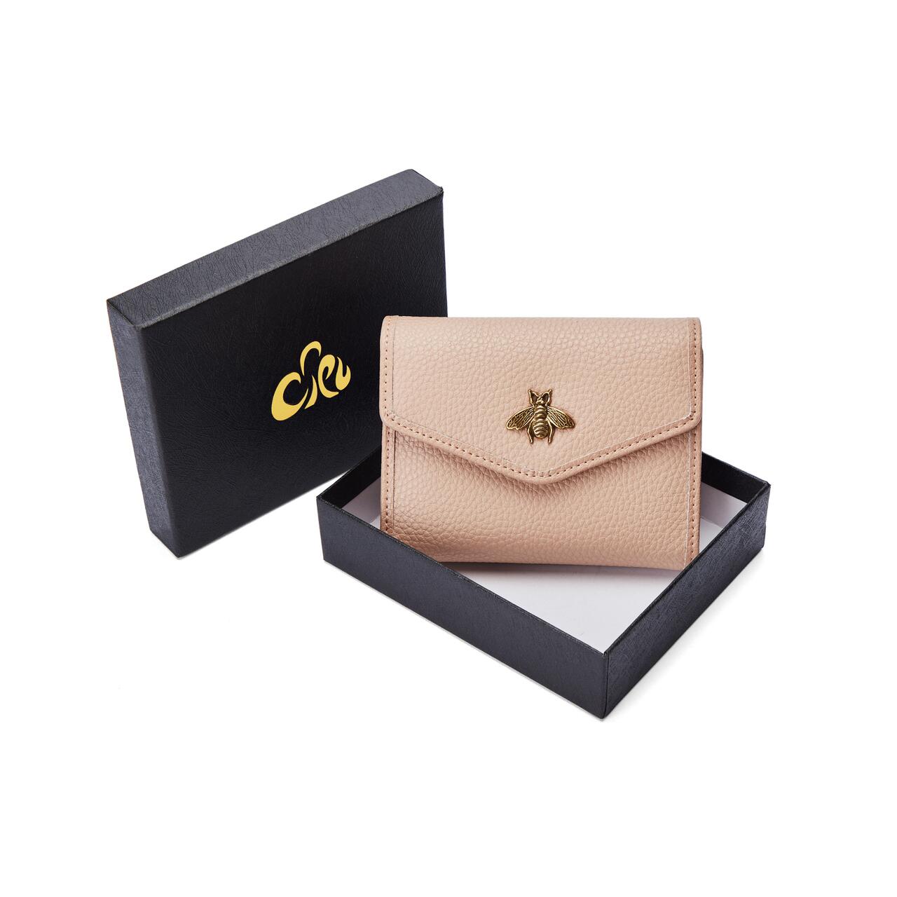 Petit format, conçu pour se glisser dans un mini sac. Cuir texturé naturel, rabat enveloppe, fermeture sécurisée, intérieur bien organisé. L''abeille métallique ajoute une touche distinctive, subtile et élégante. Un compagnon discret, mais toujours présent au quotidien.