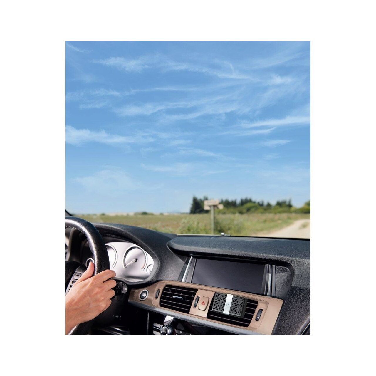 Fixez le haut-parleur à la grille de ventilation à l'aide de l'outil de serrage. Il diffuse votre parfum pendant environ 4 semaines, selon les conditions d'utilisation. Intensité réglable. Pour un parfum intense : activez la ventilation (plus efficace avec un flux d'air chaud) ou changez la céramique. Pour un parfum léger : éteignez la ventilation ou retirez le diffuseur de la grille et placez-le dans le vide-poches.
