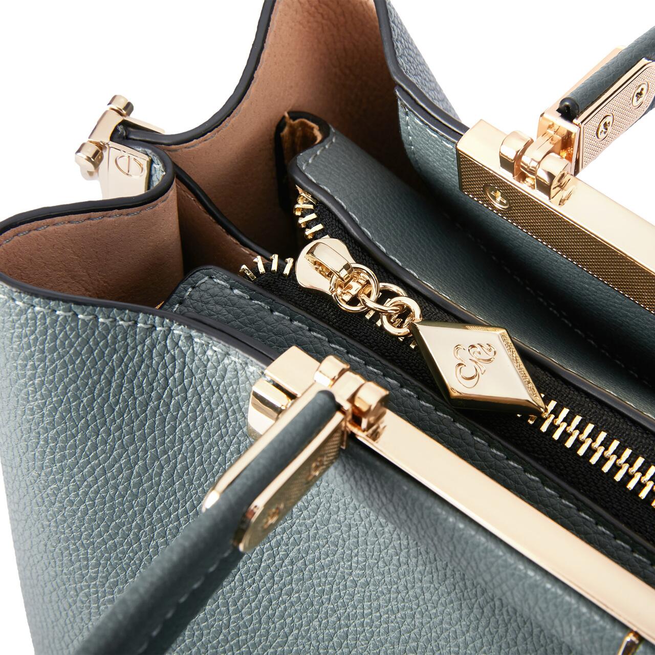 Matière extérieure : cuir naturel Matière intérieure : textile synthétique (polyester) Compartimentage : 3 compartiments, le compartiment central étant fermé par une fermeture éclair Détails intérieurs : deux grandes poches, une zippée, une ouverte Détails extérieurs : accessoire C'iel amovible, bandes de maintien en cuir Fermeture : fermeture éclair et deux clips magnétiques Bandoulière : réglable en longueur et amovible