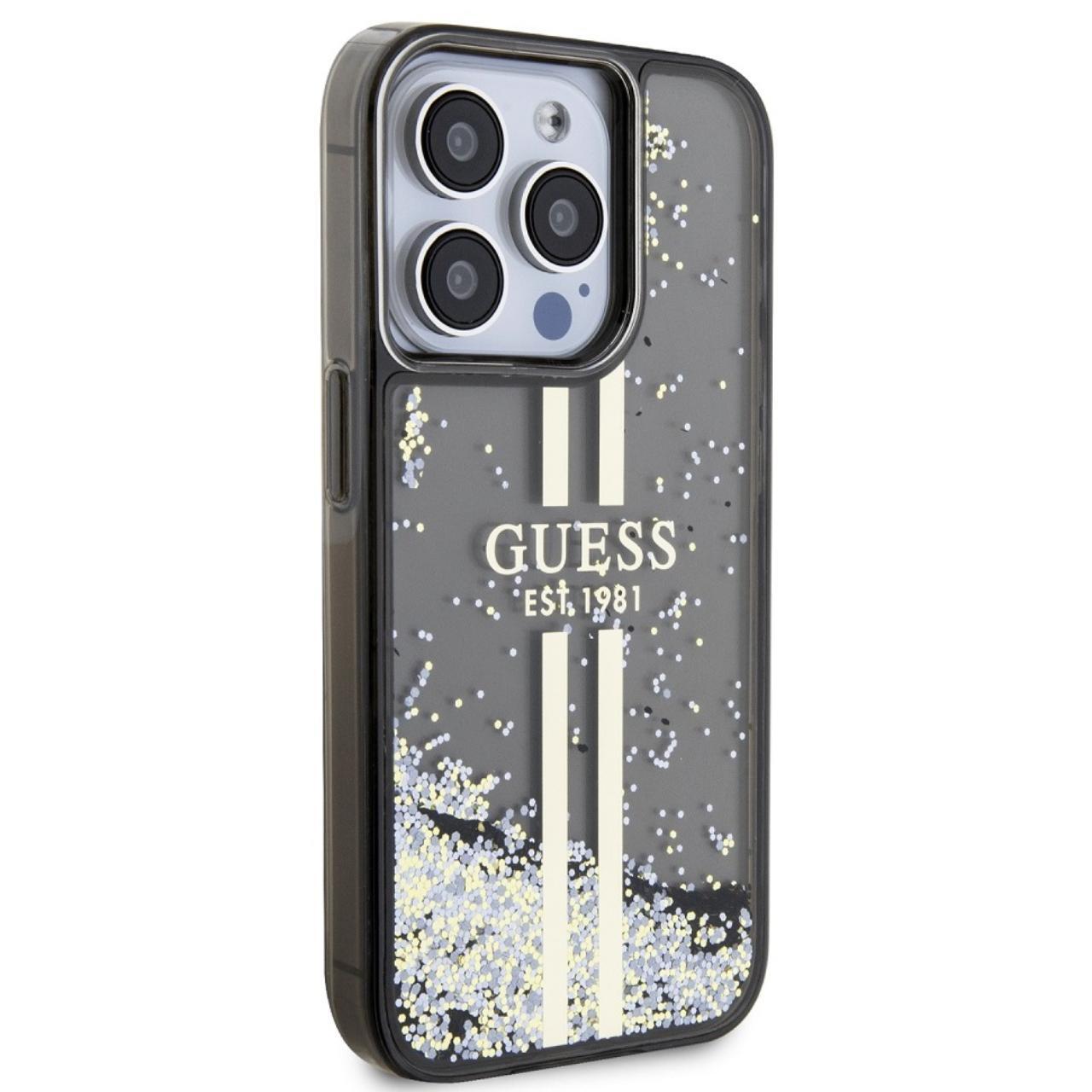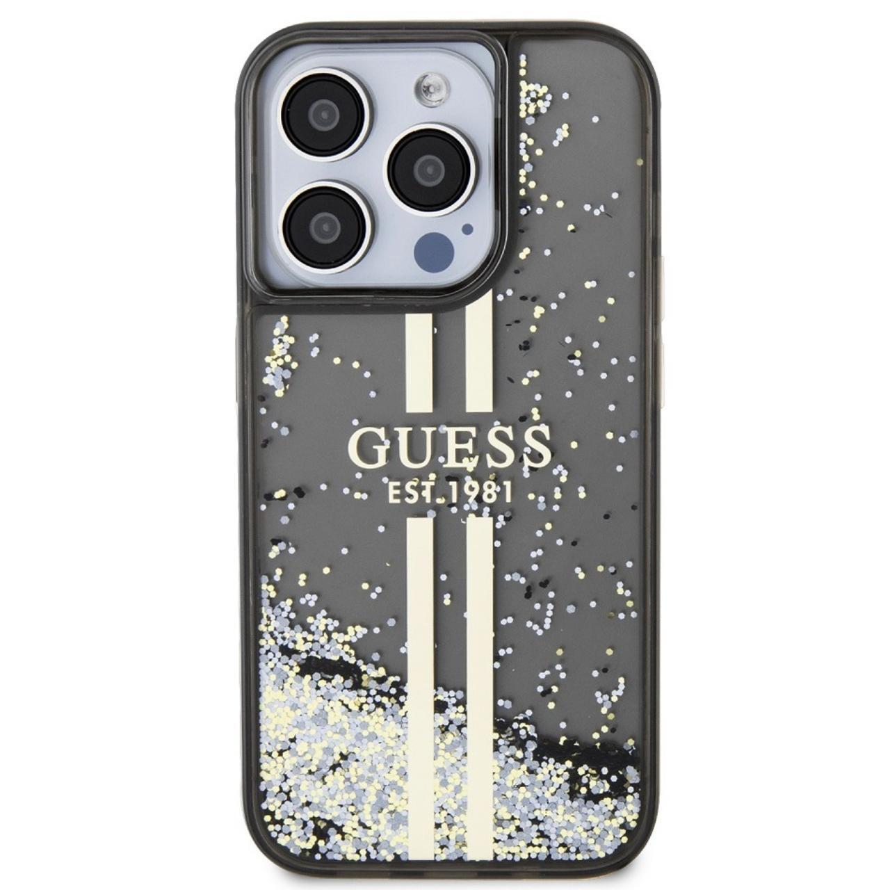 Guess Case Liquid Glitter Gold Stripe iPhone 15 Pro Max Black