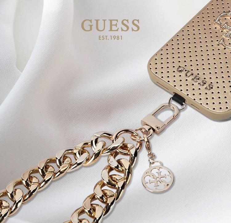 The sturdy chain with large links looks elegant and is very practical at the same time. The golden details, such as the carabiner and the pendant with the Guess logo, give the belt a sophisticated touch. You can easily attach it to your phone and start using it immediately.