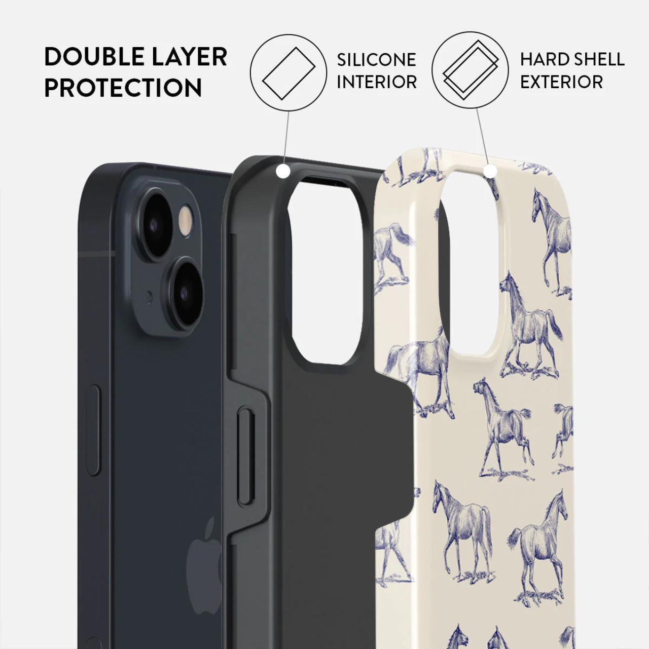 Acquista online La custodia Burga Dual Layer Derby Race compatibile con iPhone 15 offre protezione e un aspetto gradevole al telefono.