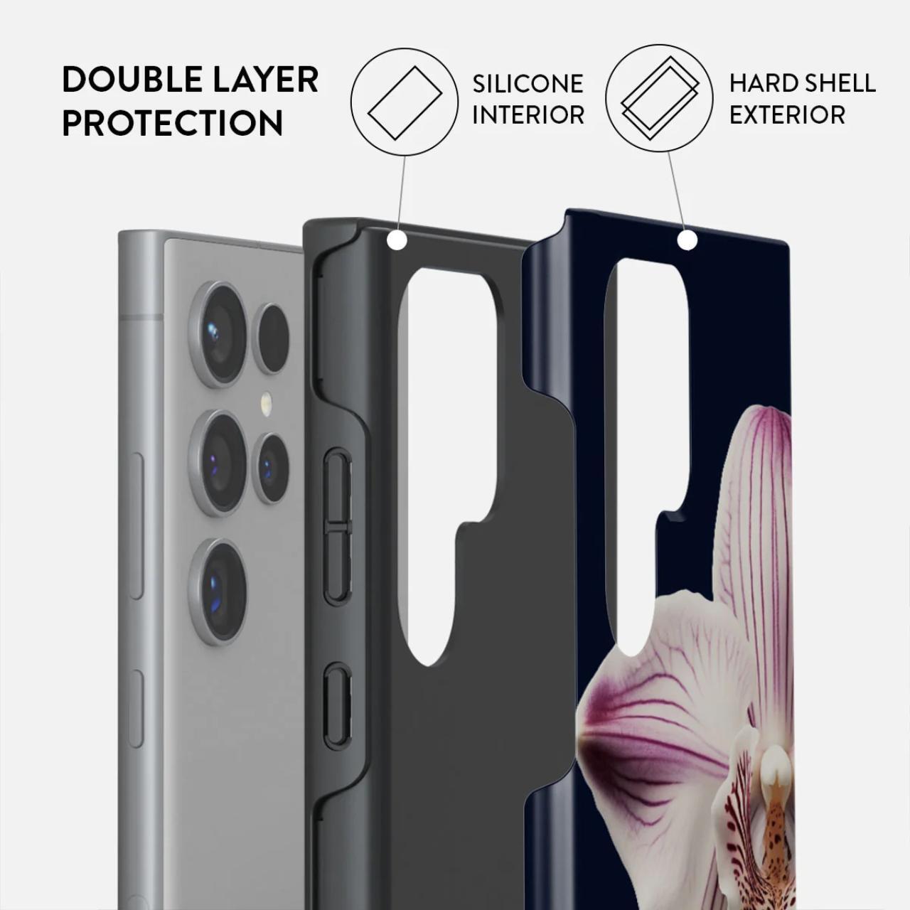Custodia Nectar a doppio strato per Samsung Galaxy S24 Ultra di Burga, ha un motivo unico e colorato e l'interno in silicone proteggerà il dispositivo in caso di caduta, mentre le cornici rialzate da 2 mm offrono protezione per schermo e fotocamera.