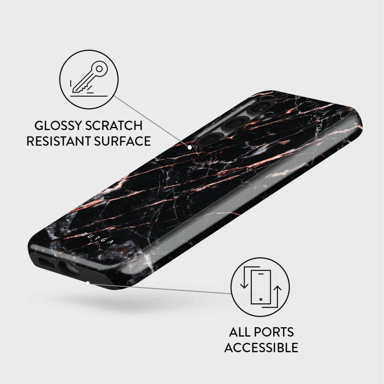 La cover Burga Dual Layer Rose Gold Marble per Samsung Galaxy S25 è realizzata con materiali di qualità che prevengono l''usura del telefono e, grazie al suo design innovativo, attirerai sicuramente tutti gli sguardi.