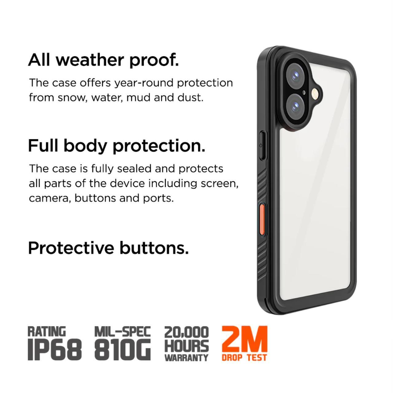 La custodia Eiger Avalanche per iPhone 16 Plus è stata realizzata per resistere fino a 30 minuti di immersione a una profondità di 1 m/3 piedi. Il design completamente sigillato e pulito garantisce inoltre una protezione completa da polvere e sporco, oltre a una superficie facile da pulire per una pulizia antibatterica.
