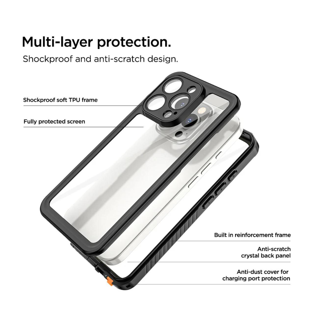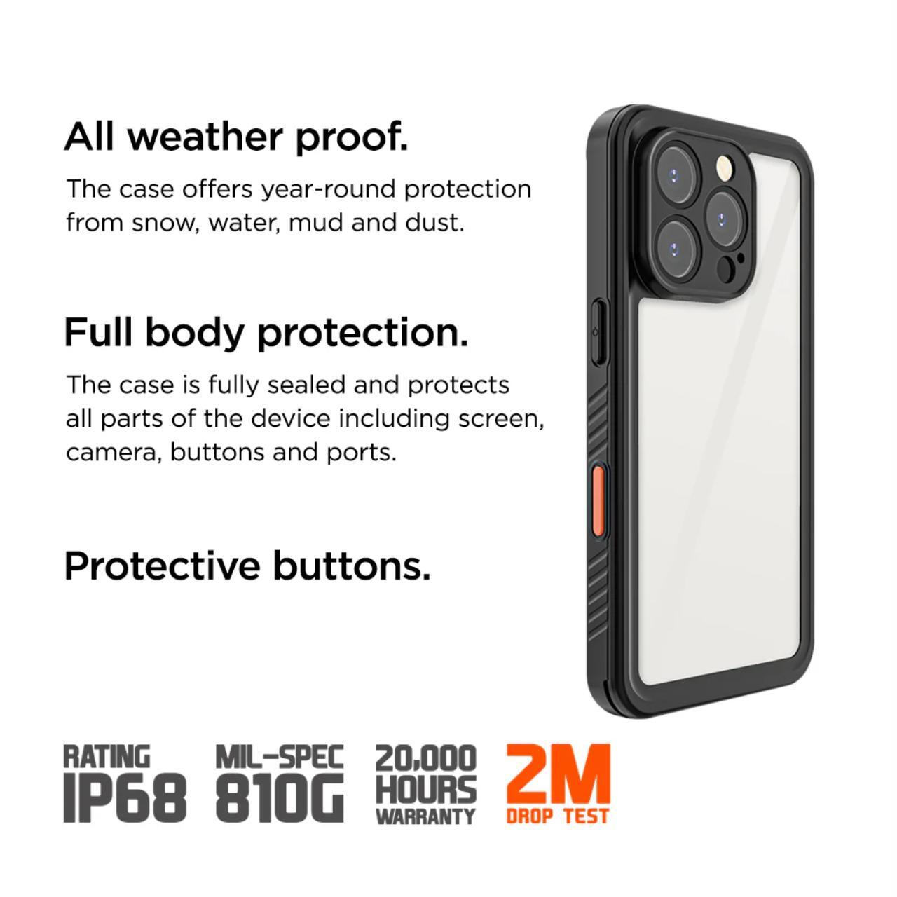 Protezione certificata: IP68: il massimo livello di protezione per le custodie di tutti i giorni. 6 si riferisce alla polvere e offre il massimo livello di protezione contro polvere e particelle. 8 si riferisce all'acqua e offre il secondo livello più alto di penetrazione dell'acqua ad alta pressione.