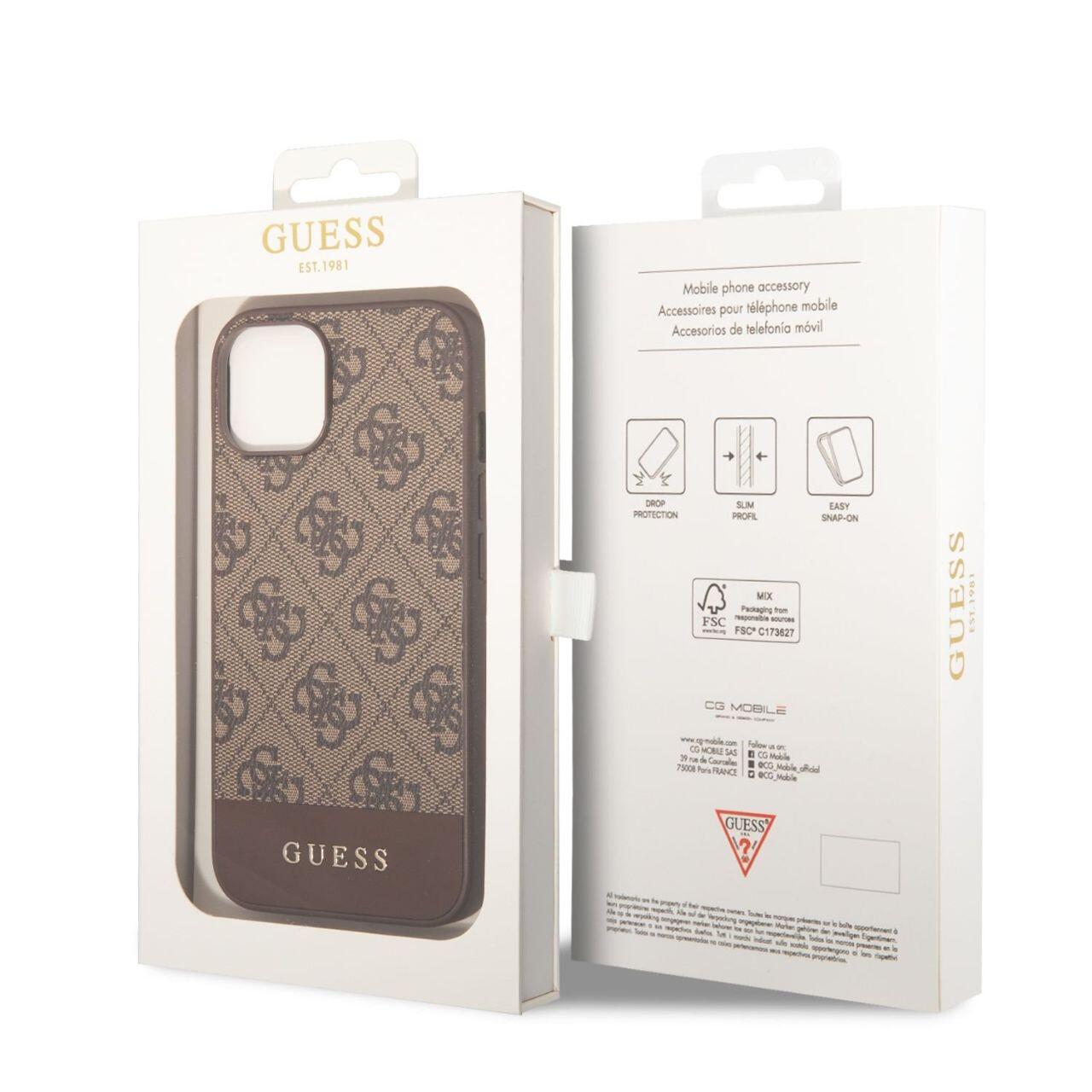 Custodia Guess 4G Stripe Logo iPhone 14 Marrone