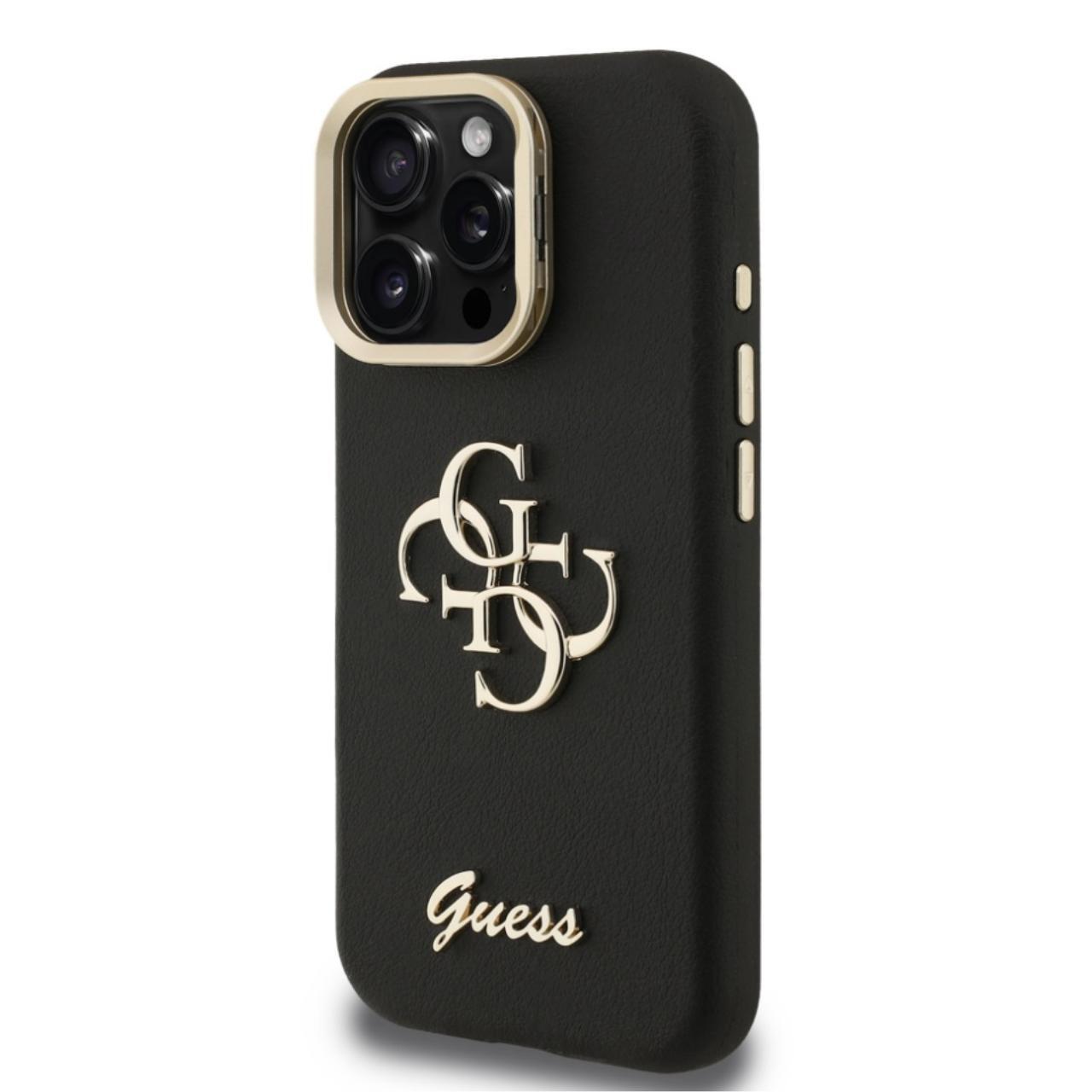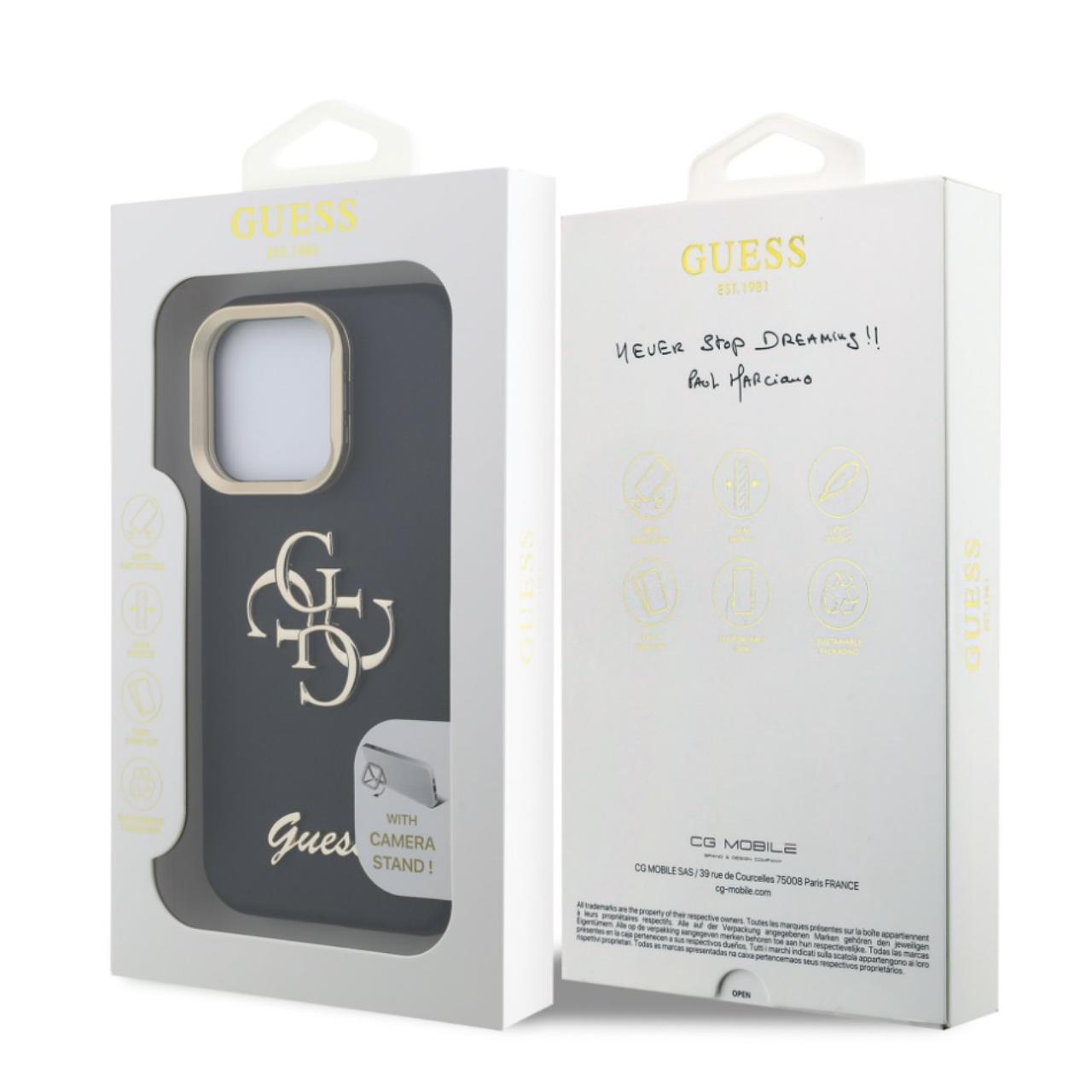Custodia Guess Grained 4G Logo Stand Camera Frame per iPhone 15 Pro Max Nero