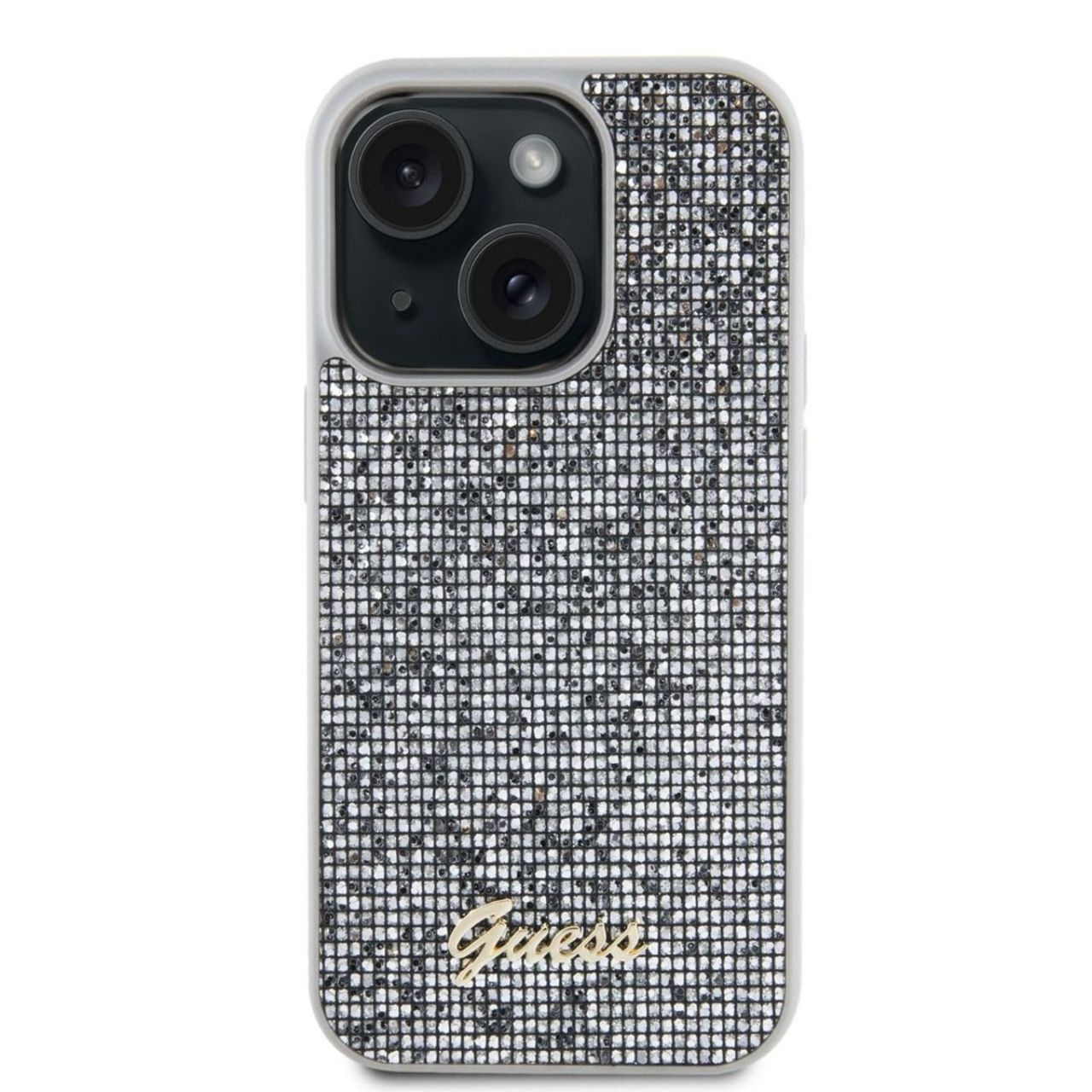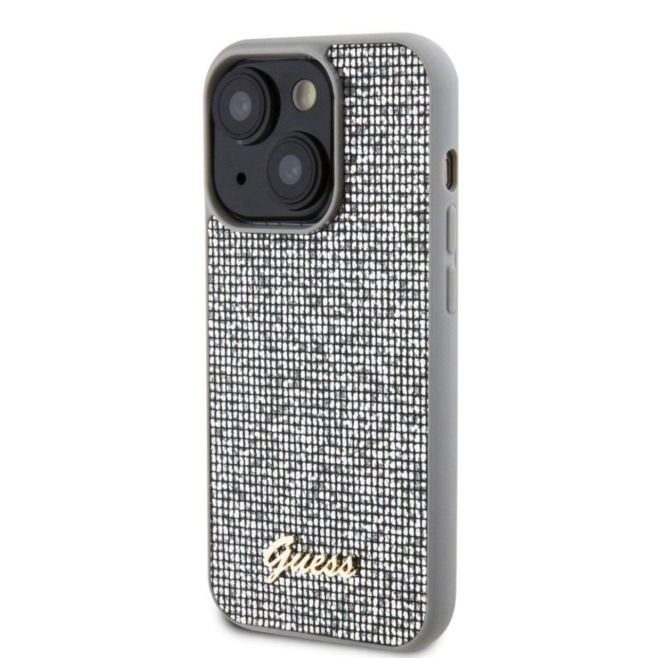 Custodia Guess Square Mirror Script Logo iPhone 15 Argento