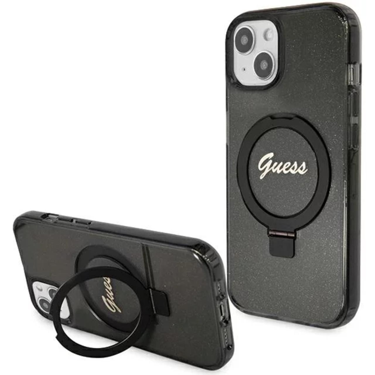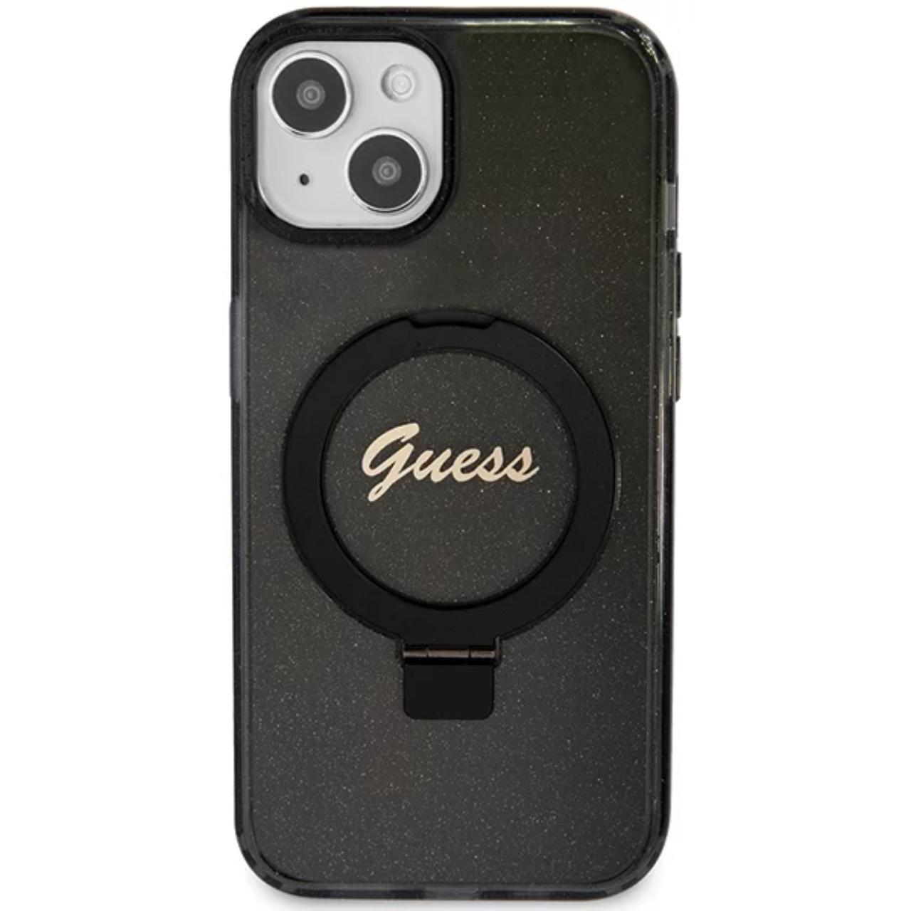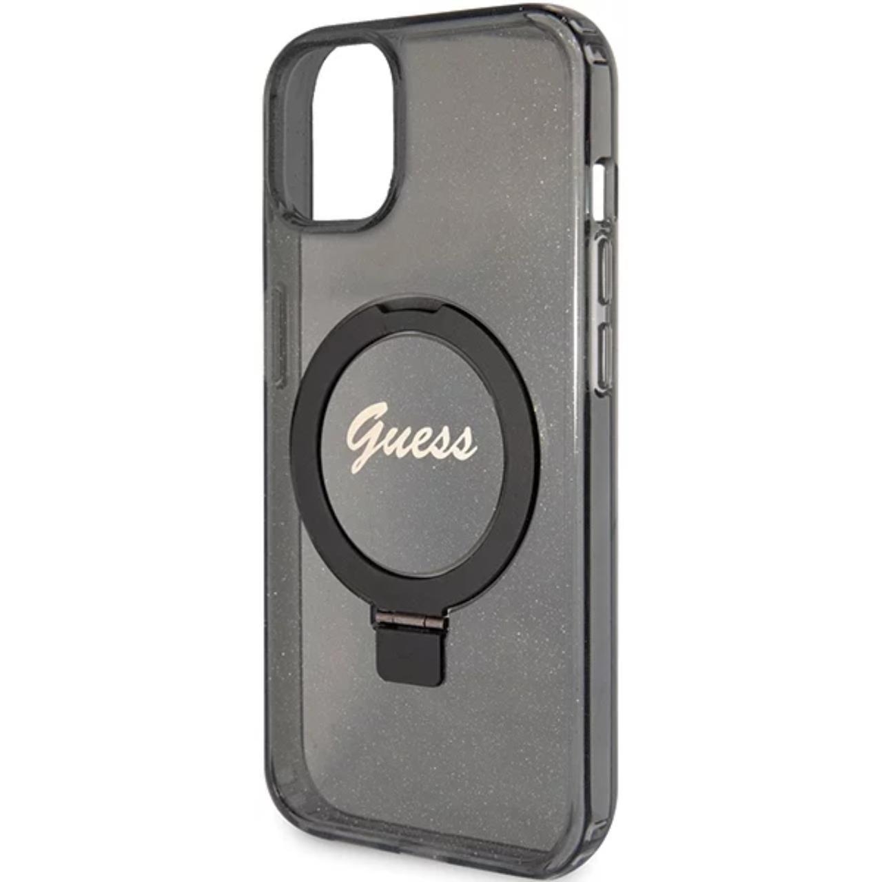 Guess Case Ring Stand Glitter MagSafe iPhone 15 Nero