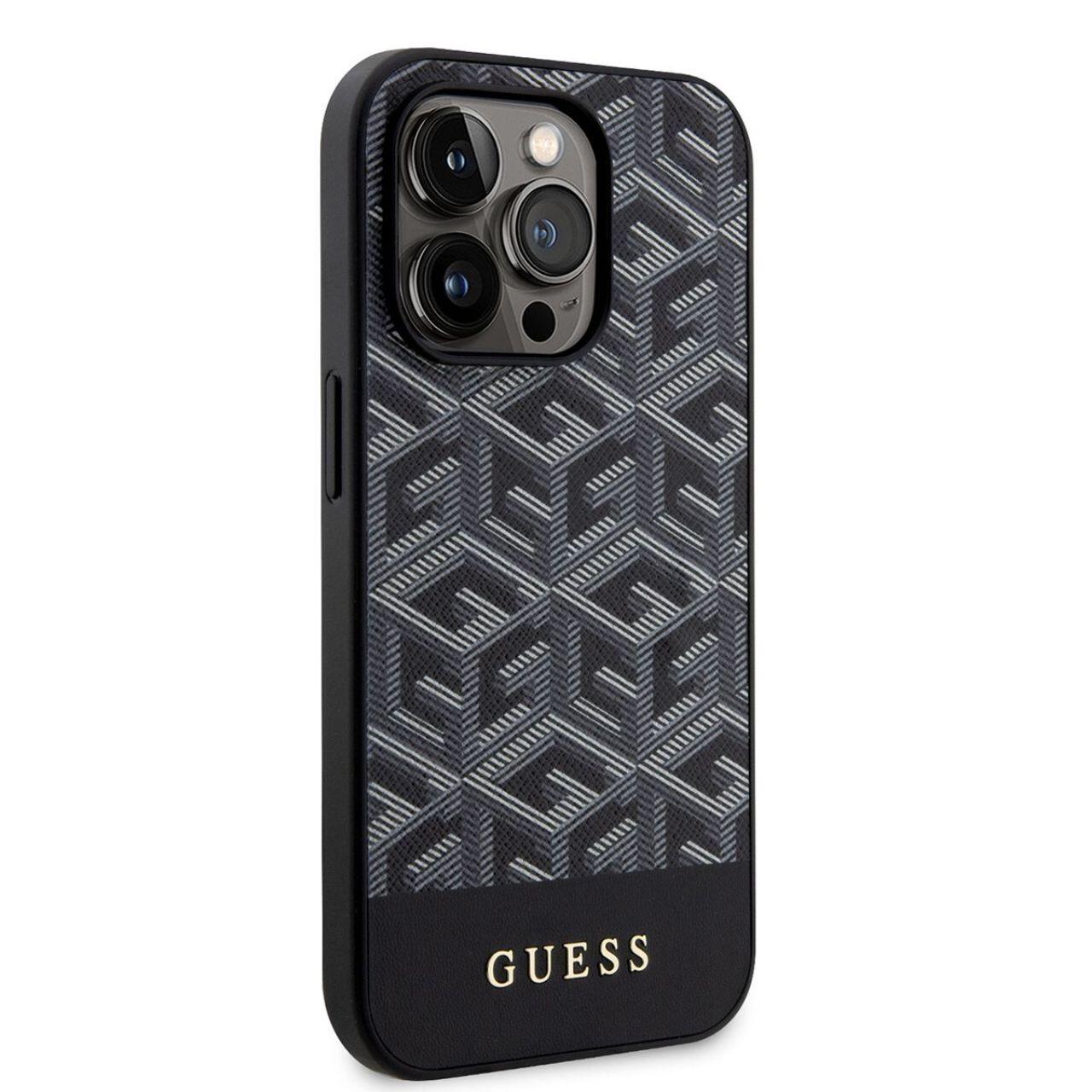 Custodia Guess GCube Stripes MagSafe per iPhone 15 Pro nera