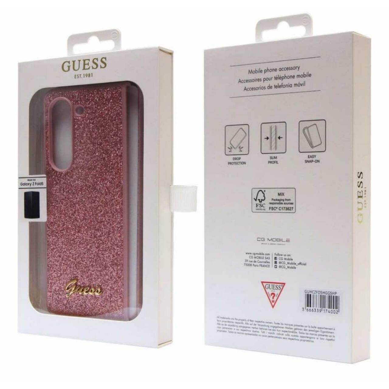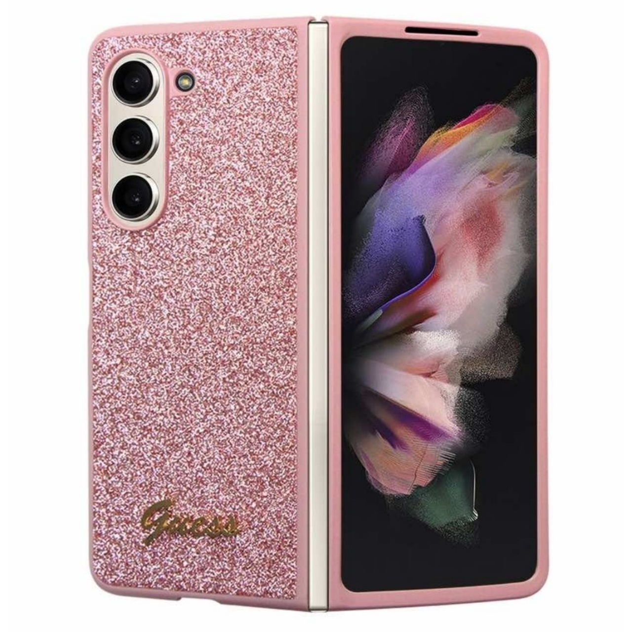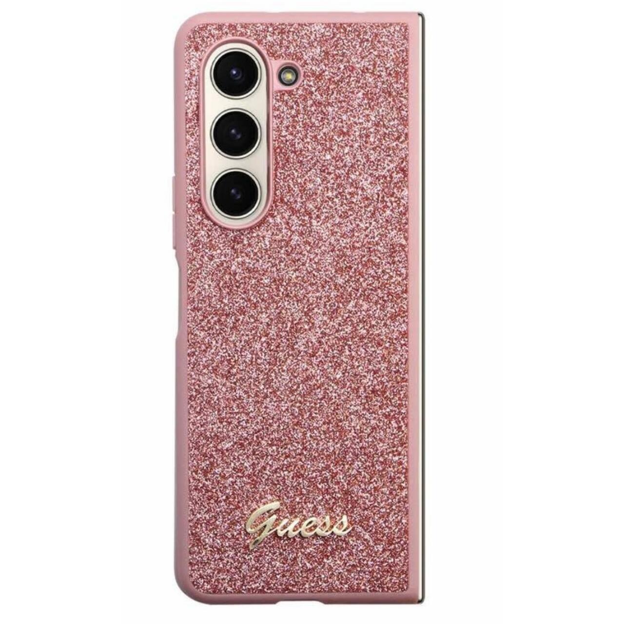 Custodia Guess Glitter Script per Samsung Galaxy Z Fold5 Rosa