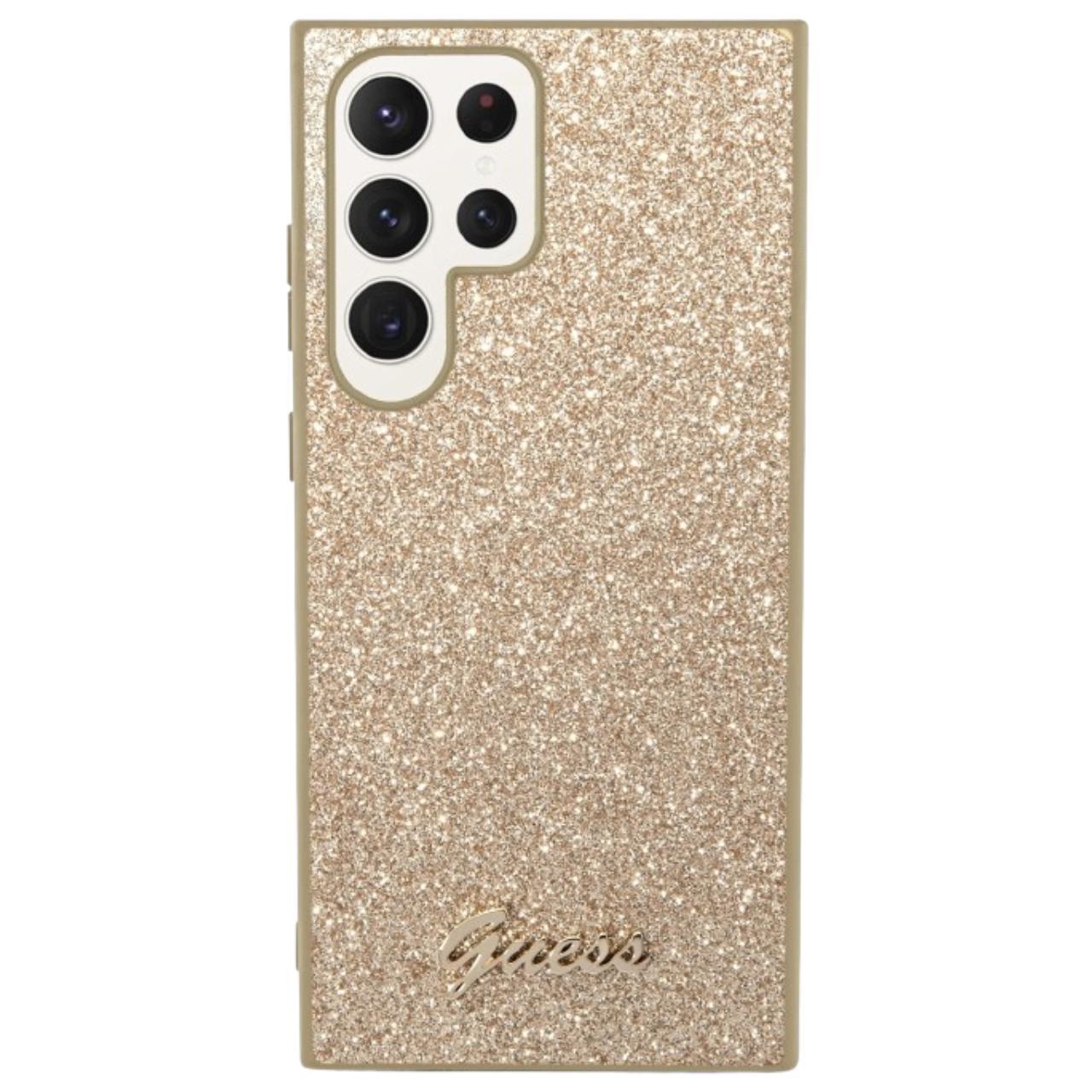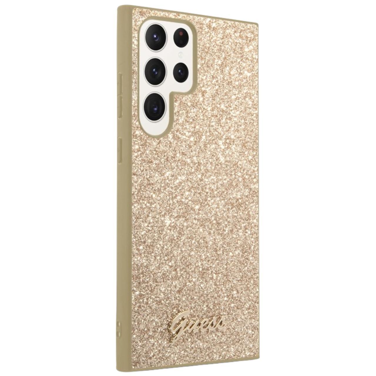 Custodia Guess in TPU Glitter Flakes Logo in Metallo per Samsung Galaxy S24 Ultra Oro
