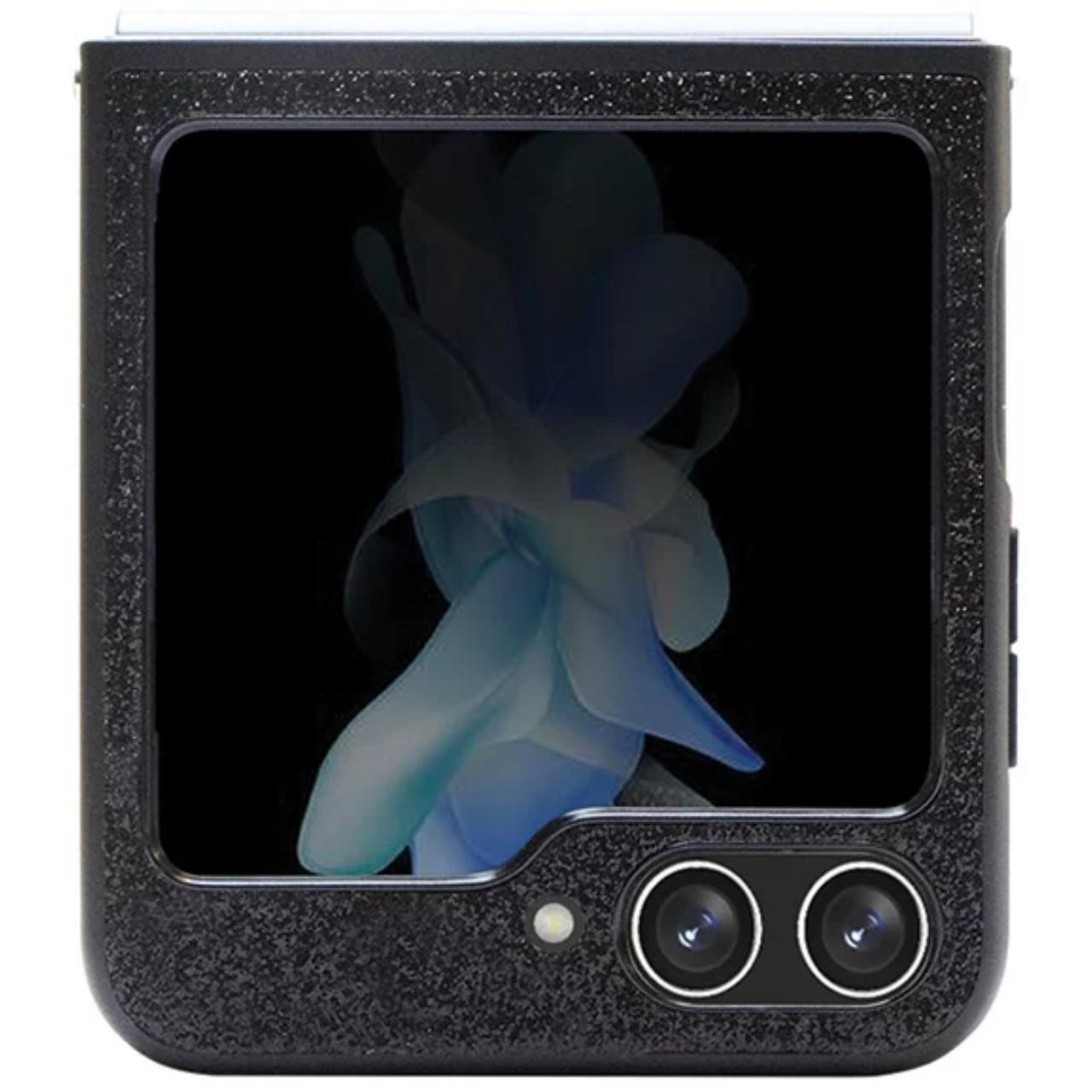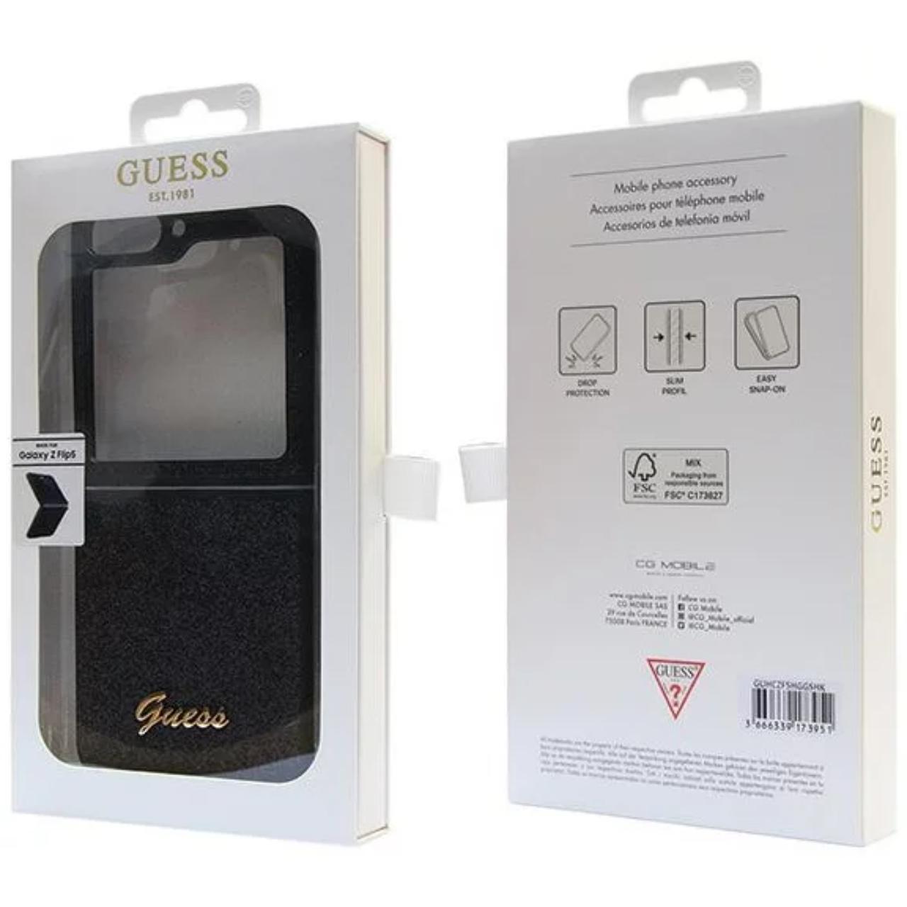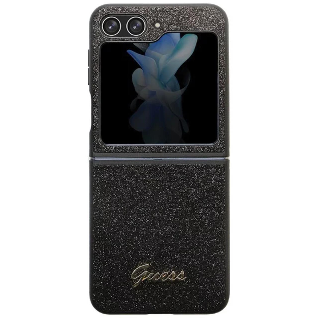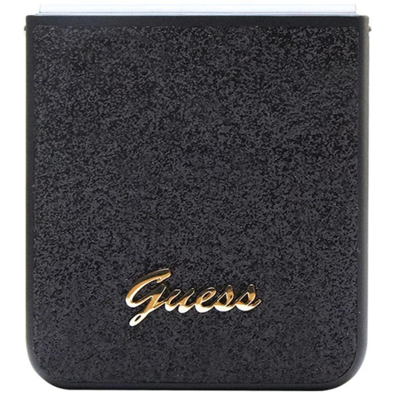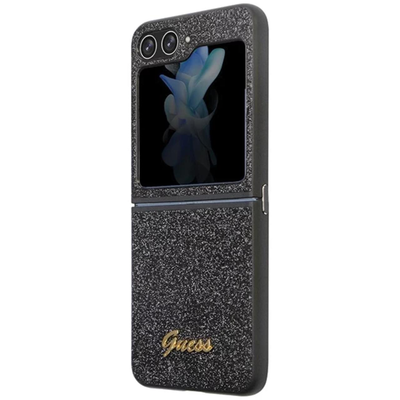 Custodia Guess Glitter Flakes Logo in Metallo TPU per Samsung Galaxy Z Flip5 Nero