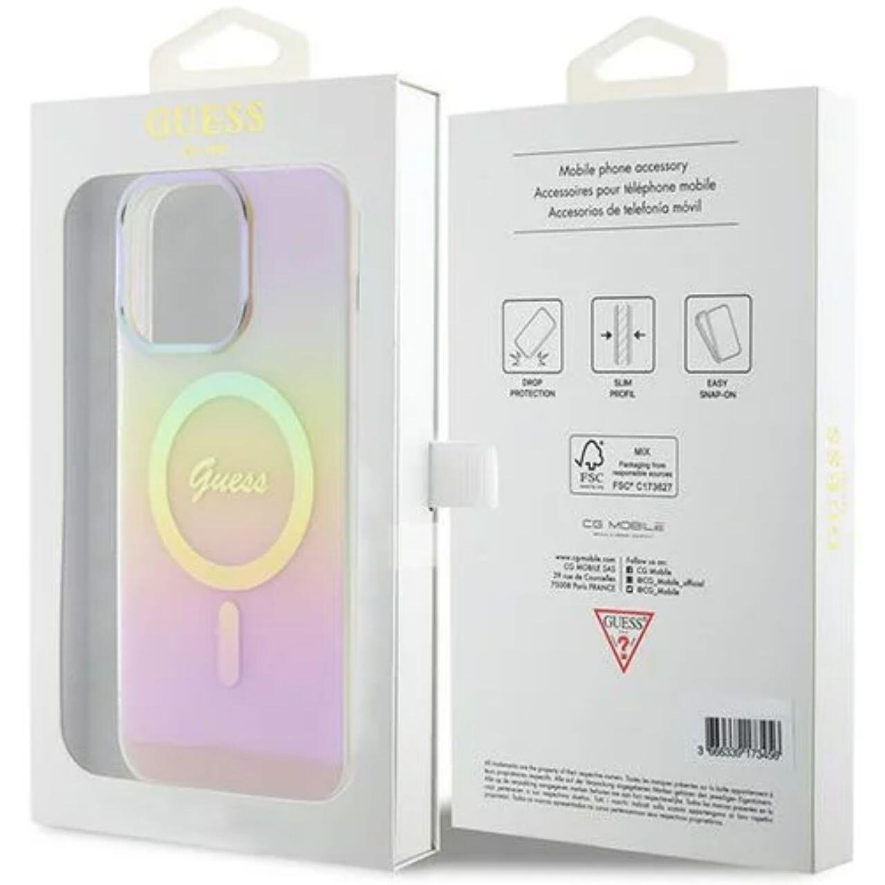 Custodia Guess Iridescent Script MagSafe iPhone 15 Pro Rosa