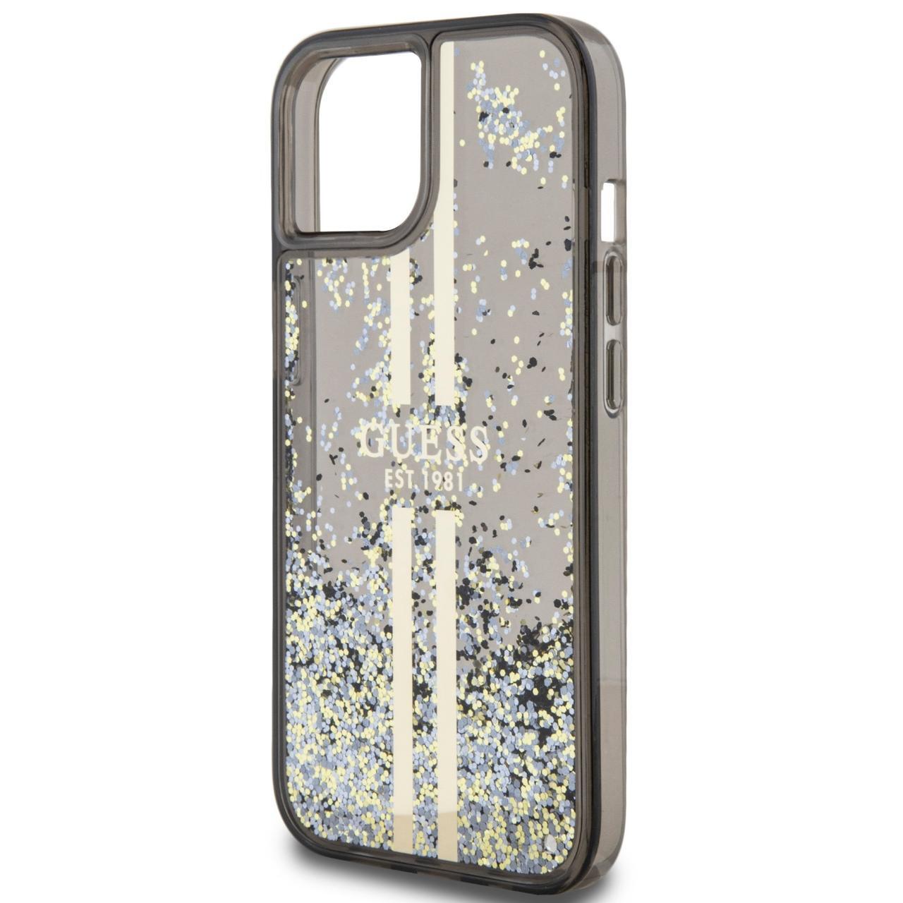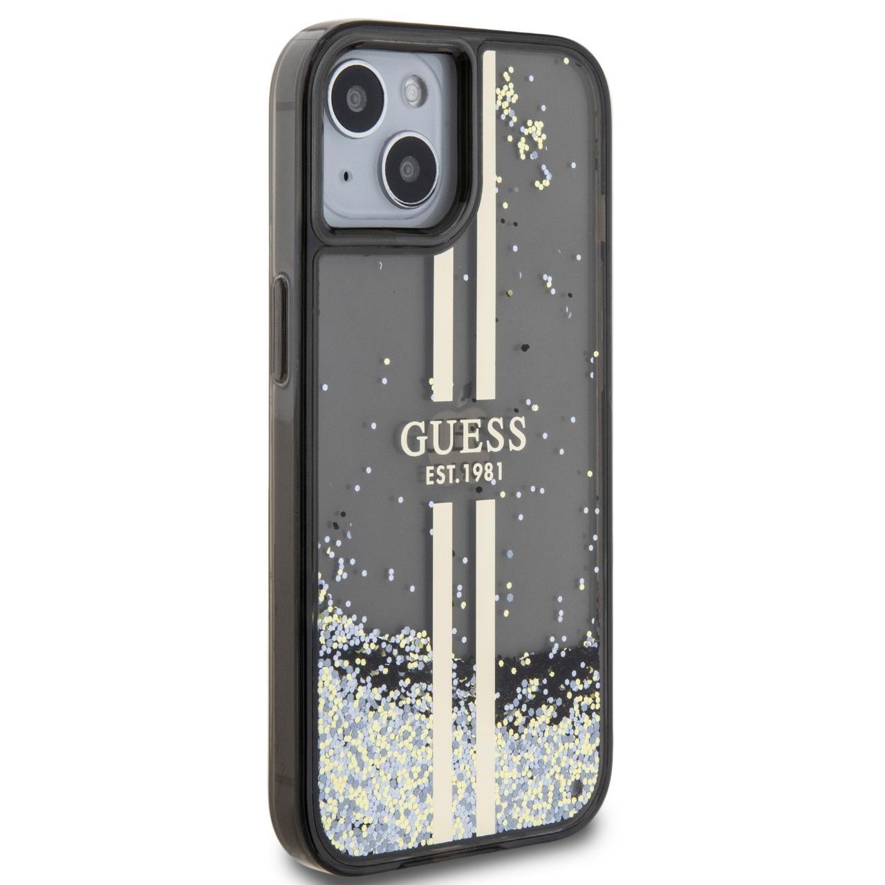 Custodia Guess Liquid Glitter Gold Stripe per iPhone 15 Plus nera