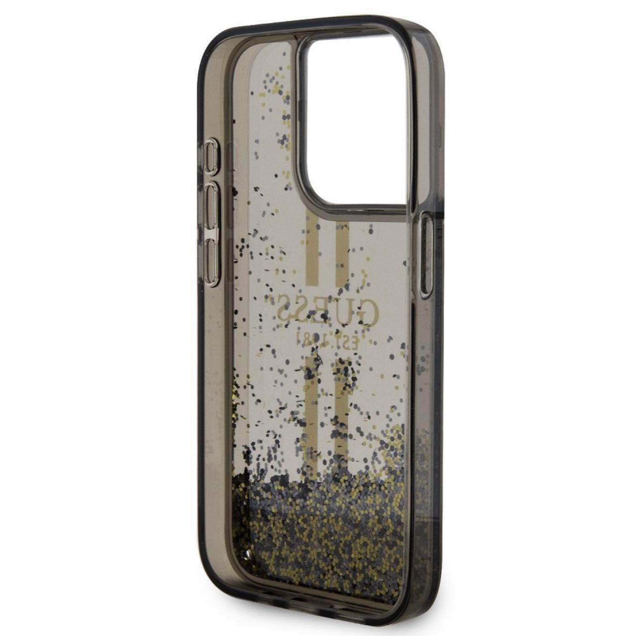 Custodia Guess Liquid Glitter Gold Stripe per iPhone 15 Pro Nera