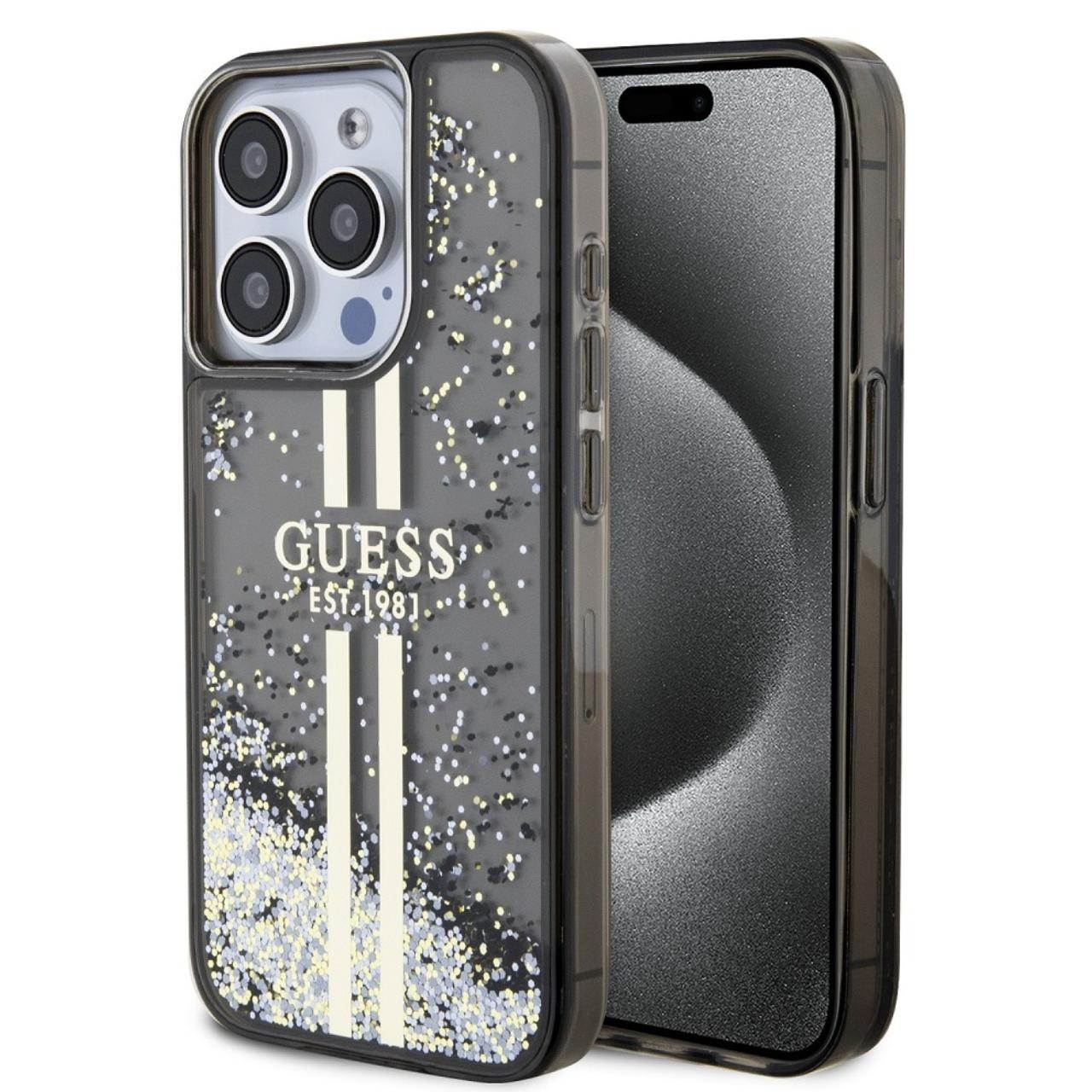 Custodia Guess Liquid Glitter Gold Stripe per iPhone 15 Pro nera
