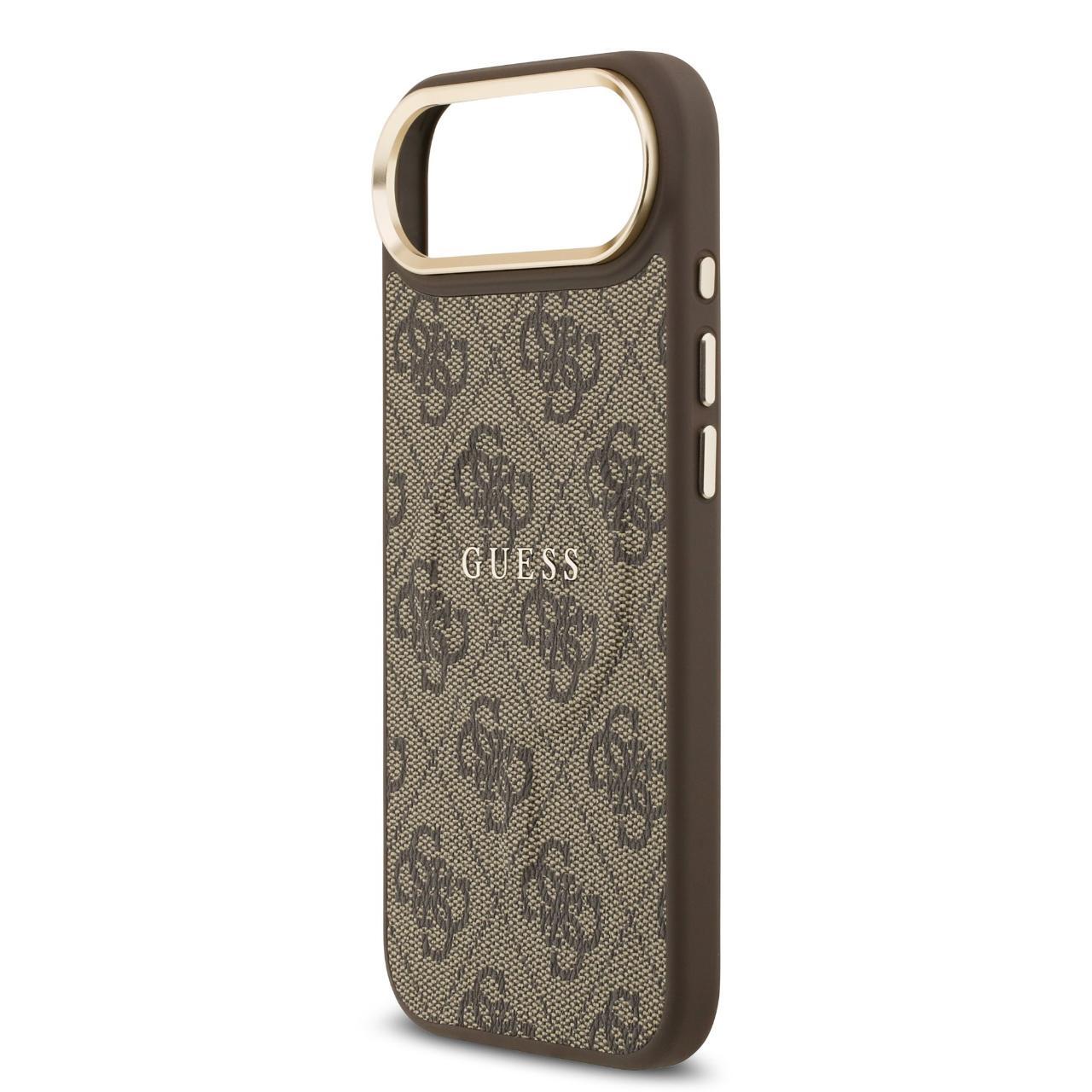 Custodia Guess in pelle sintetica 4G con cornice dorata e MagSafe per iPhone Air Marrone