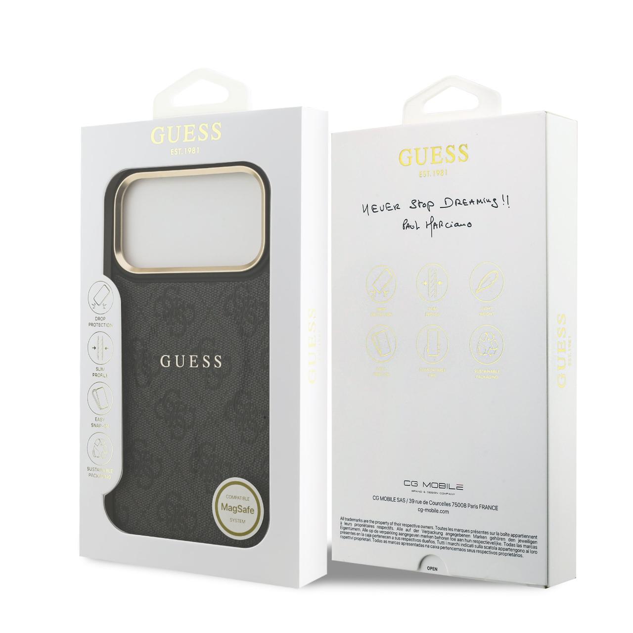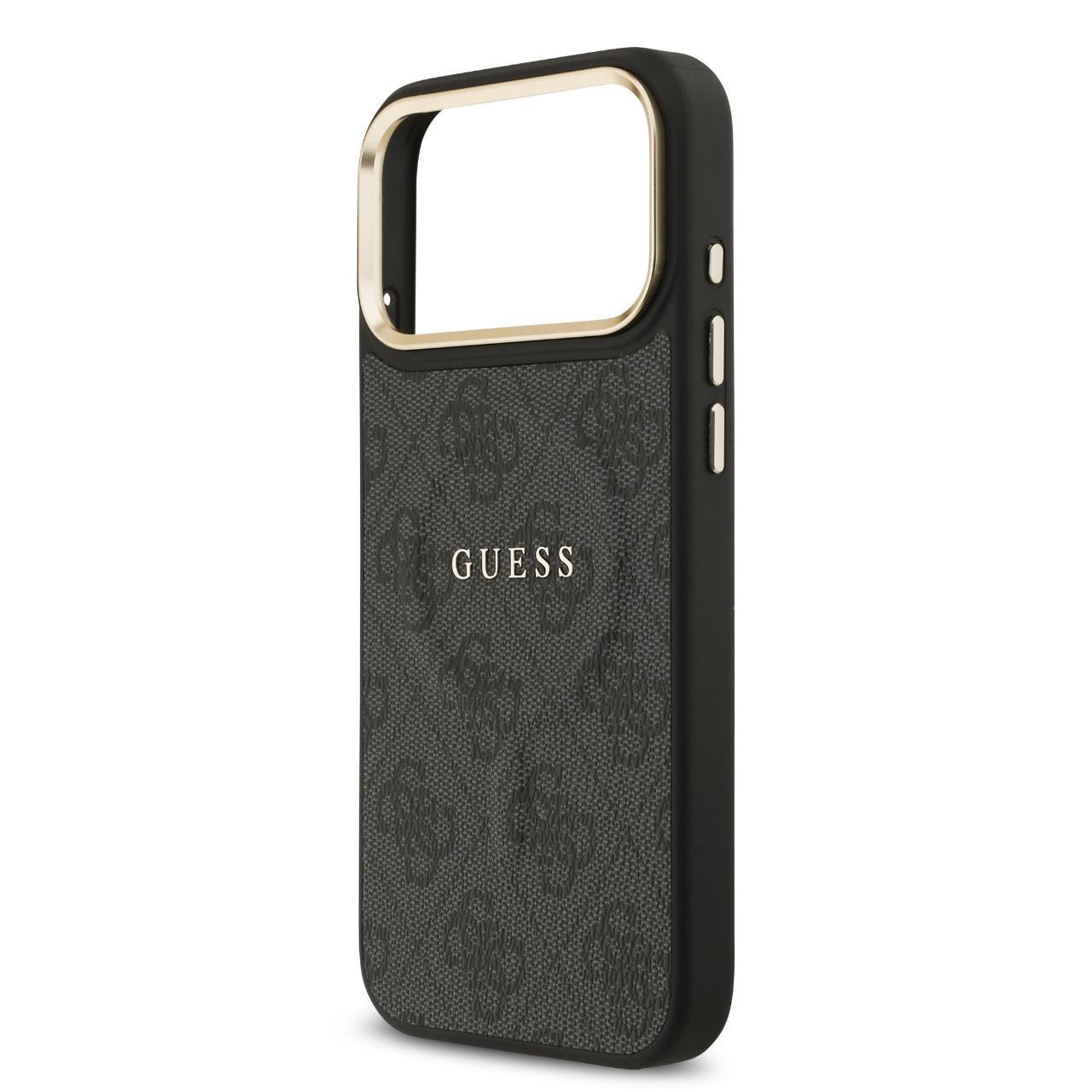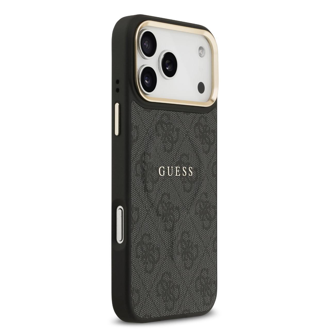 Custodia Guess in pelle sintetica 4G con cornice dorata e MagSafe per iPhone 17 Pro, nera