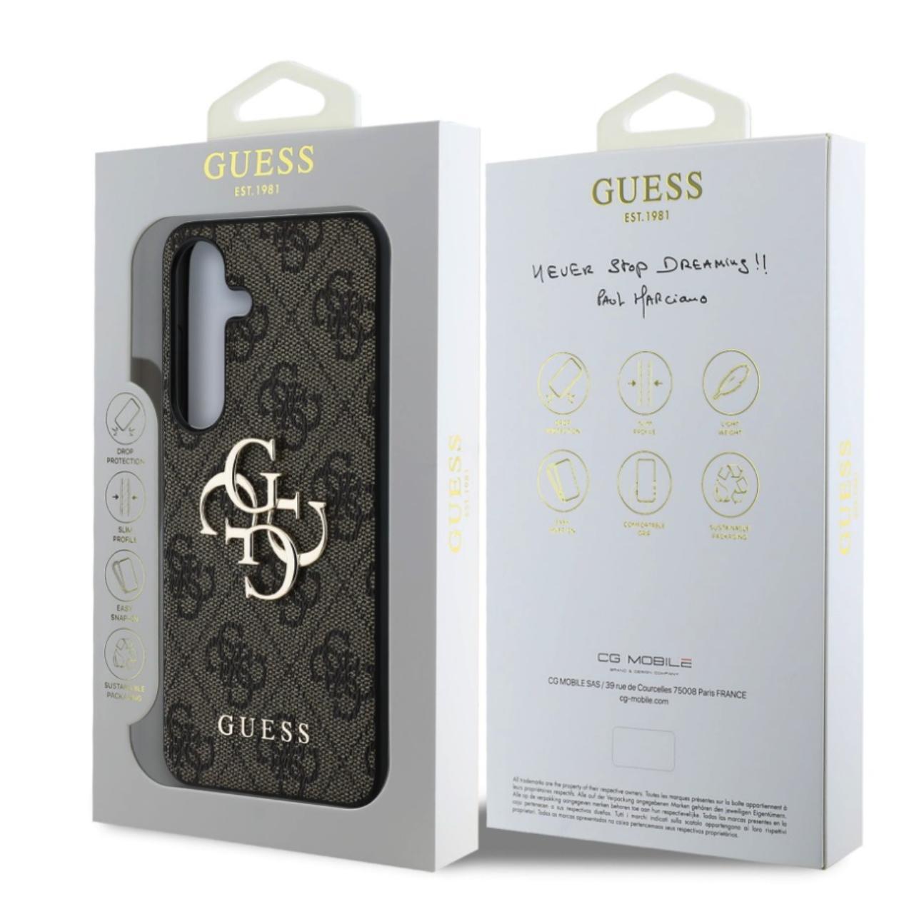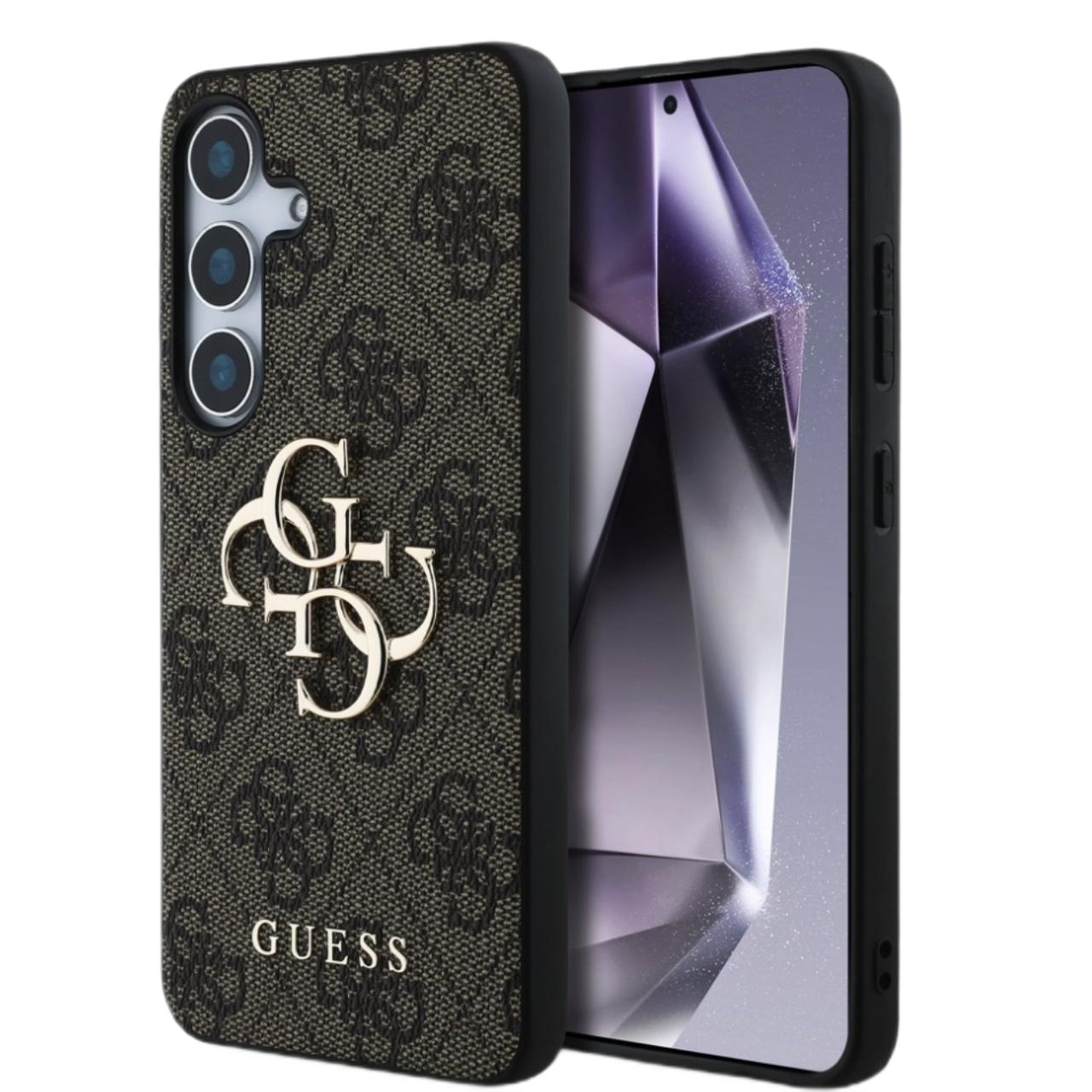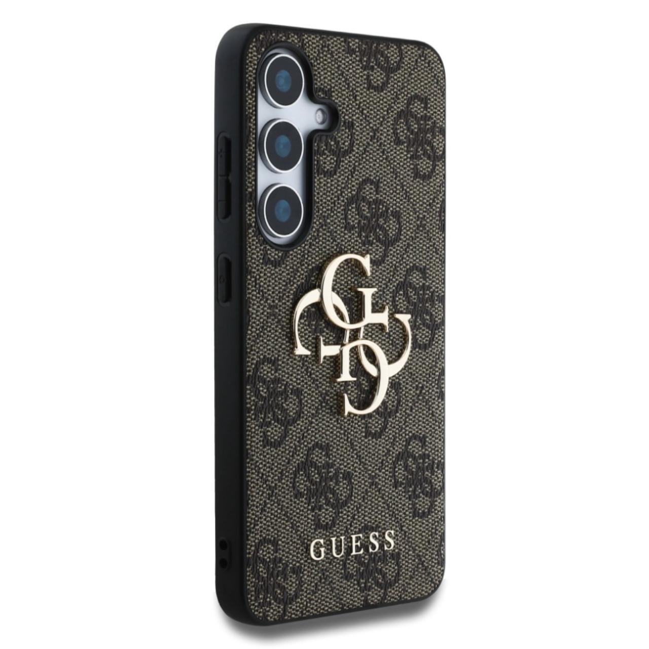 Custodia Guess PU 4G Metal Logo per Samsung Galaxy S25 Marrone