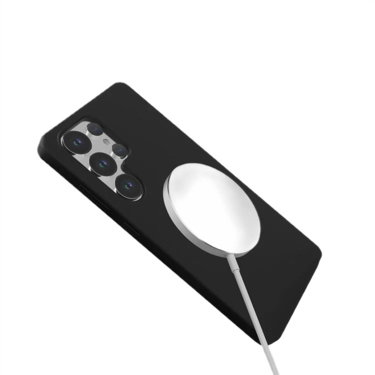 Custodia Lemontti in silicone liquido con ricarica magnetica per Samsung Galaxy S25 Ultra, nera