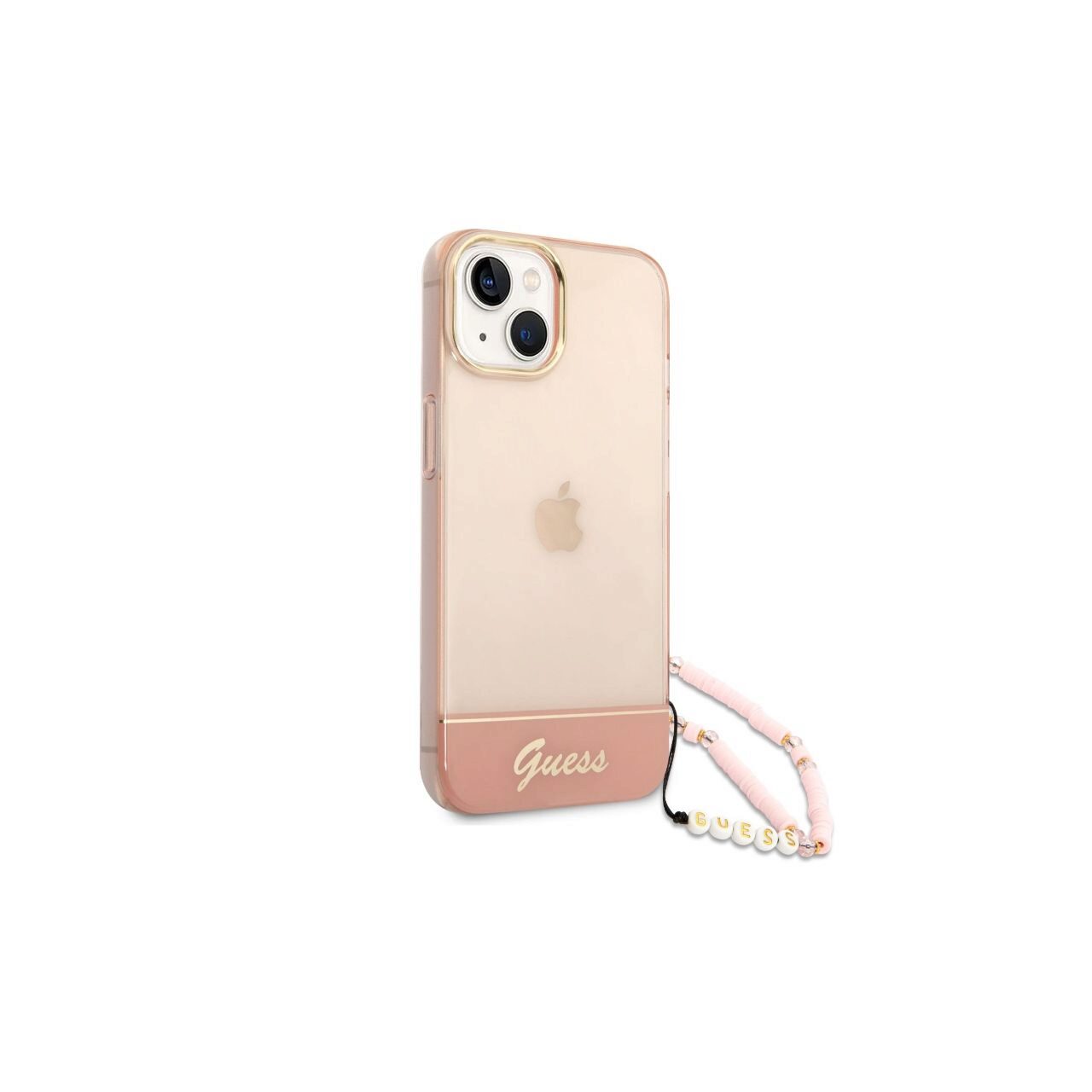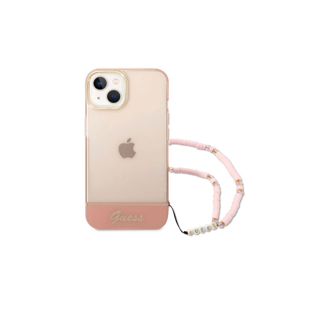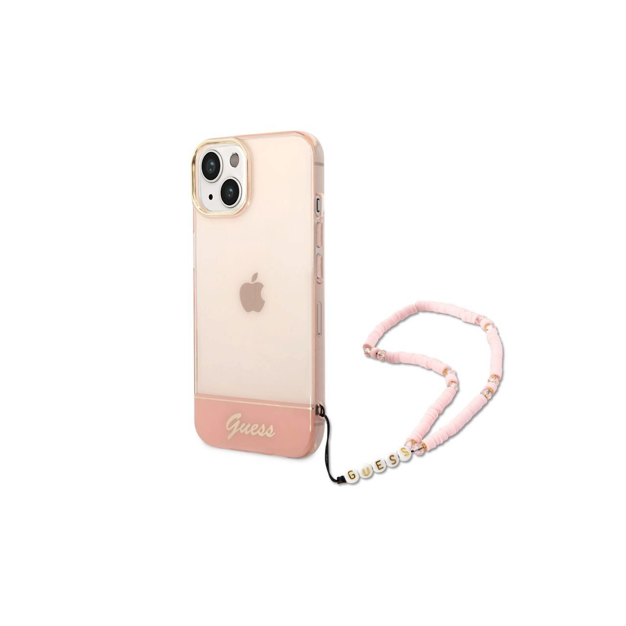 Guess Custodia in TPU Fotocamera Contorno Cinturino traslucido iPhone 14 Plus Rosa