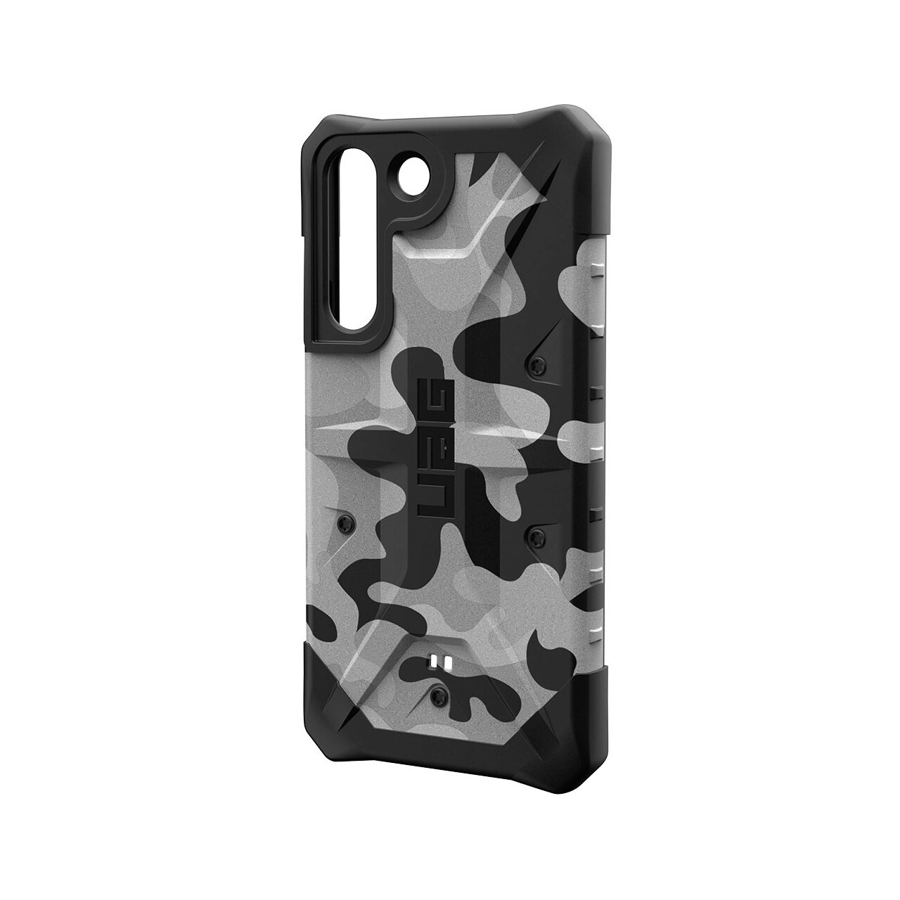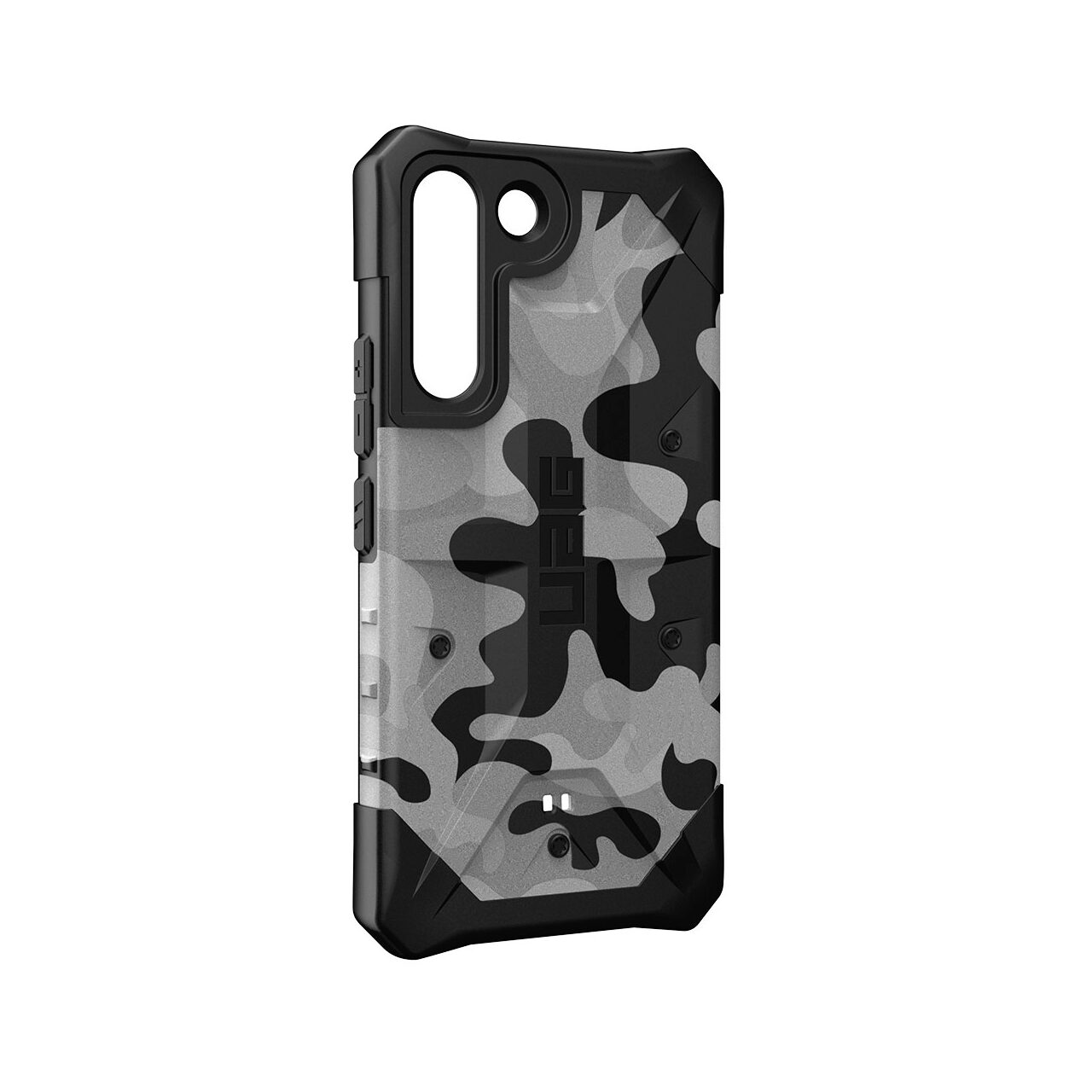 La custodia Pathfinder serie SE per Samsung Galaxy S22 Plus di UAG è composta da materiali di qualità che assorbono con successo gli urti e proteggono da graffi. I bordi sono flessibili nella zona dei pulsanti, superiore e inferiore, e gli angoli sono evidenziati e rinforzati. Soddisfa gli standard di protezione MIL STD 810G 516.6 testati contro le cadute militari contro urti e gocce d'acqua.