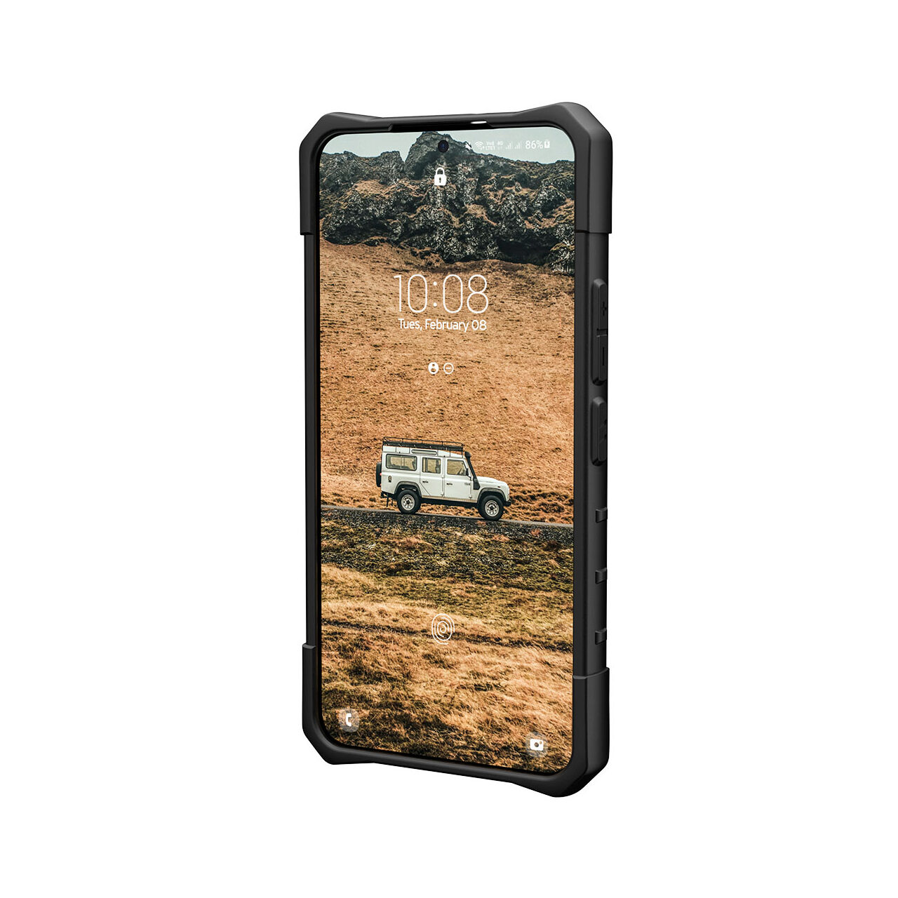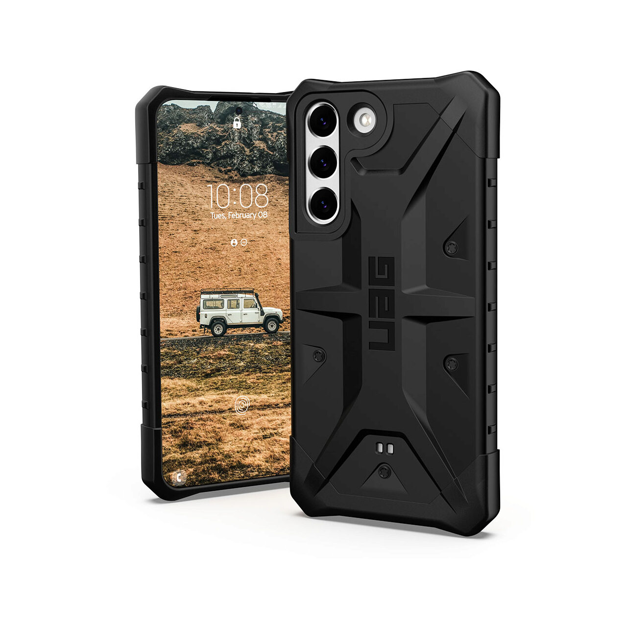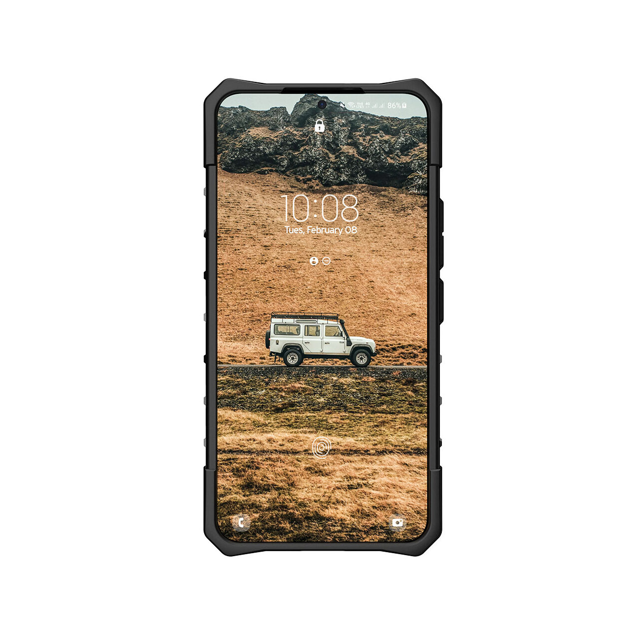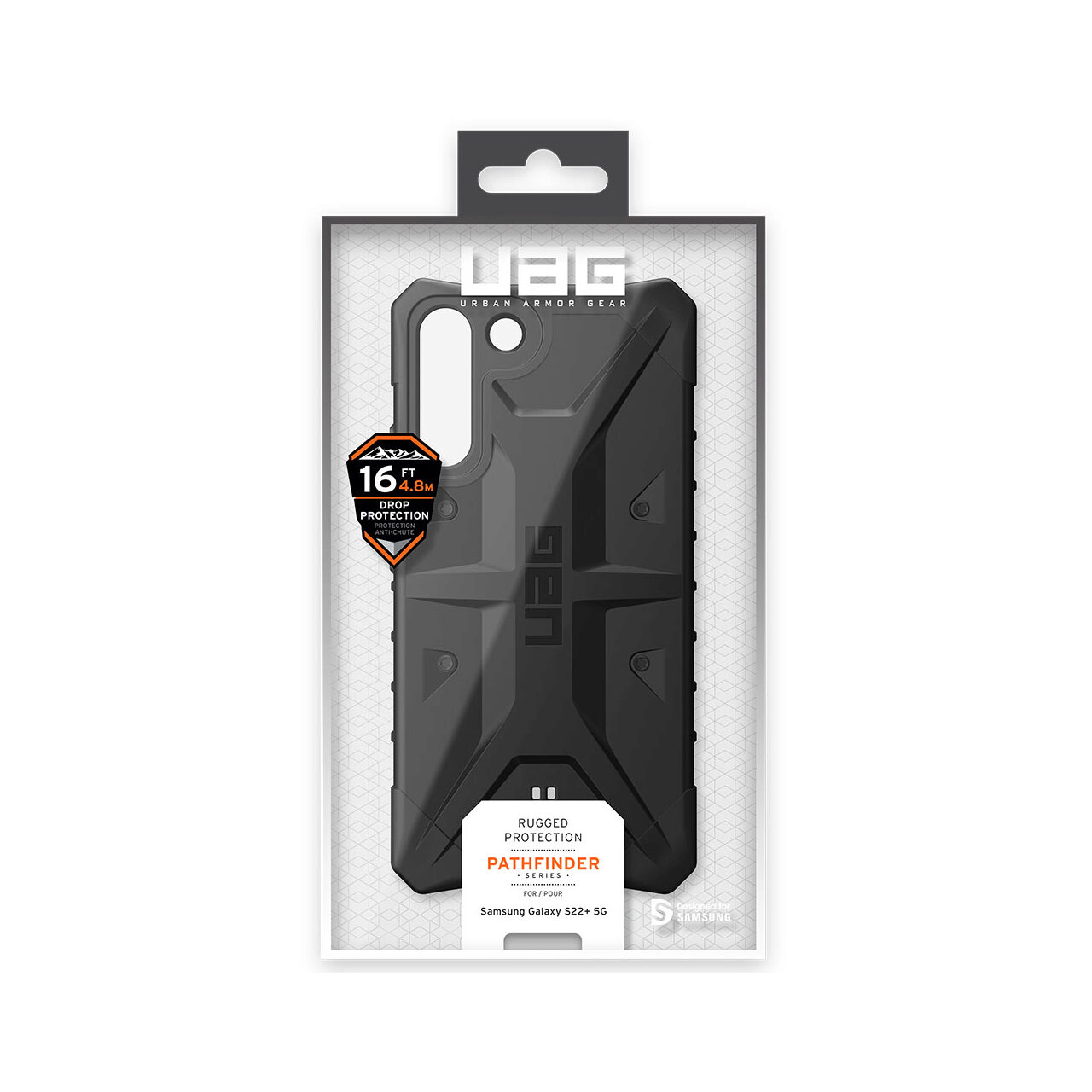 La custodia della serie Pathfinder per Samsung Galaxy S22 Plus di UAG è composta da materiali di qualità che assorbono con successo gli urti e proteggono dai graffi. I bordi sono flessibili nella zona dei pulsanti, superiore e inferiore, e gli angoli sono evidenziati e rinforzati. Soddisfa gli standard di protezione MIL STD 810G 516.6 testati contro le cadute militari contro urti e gocce d'acqua.