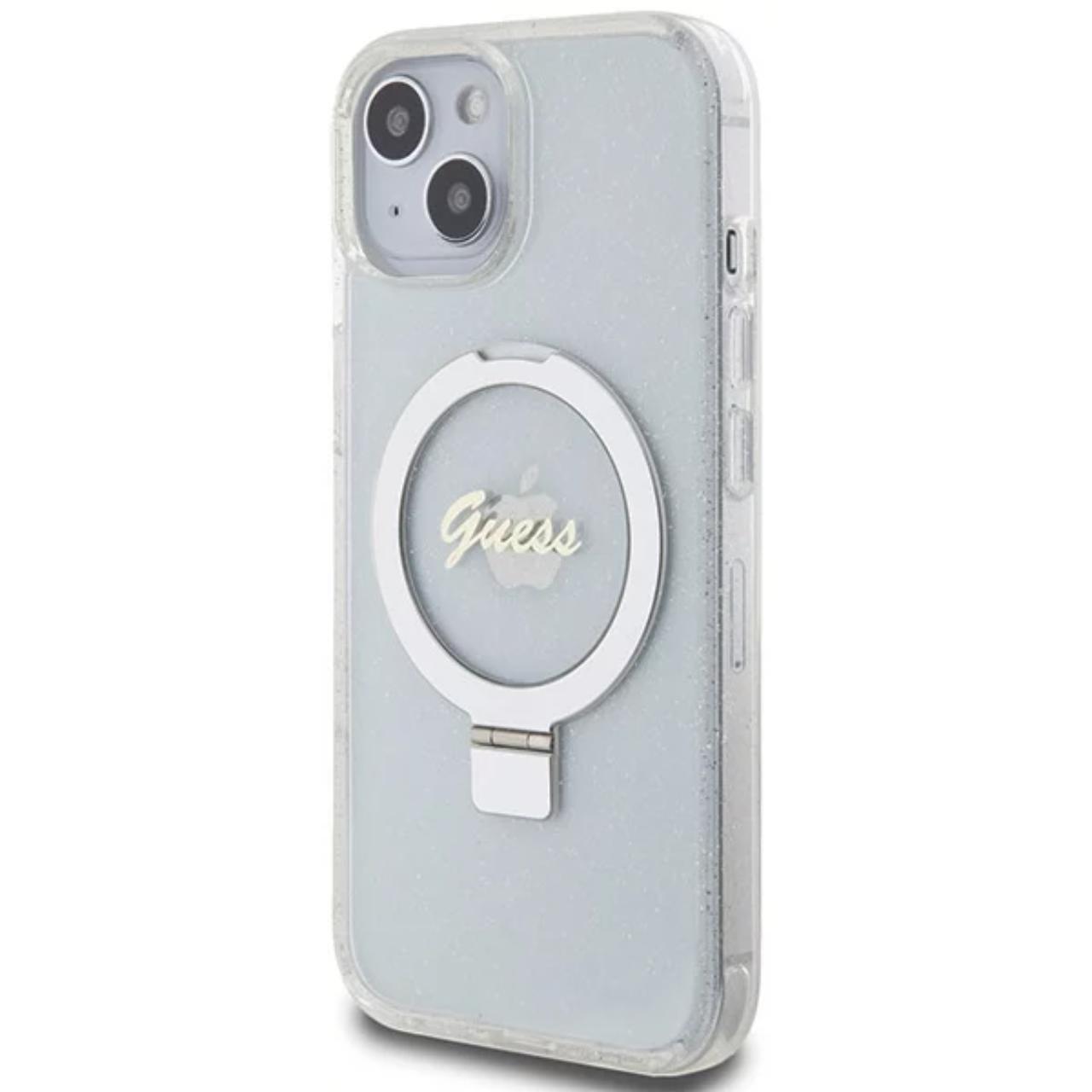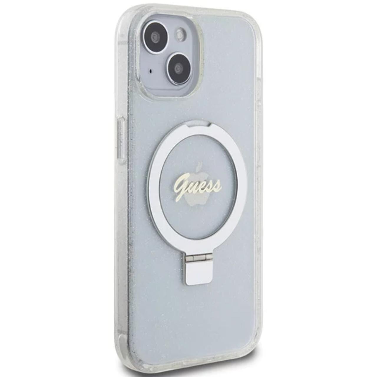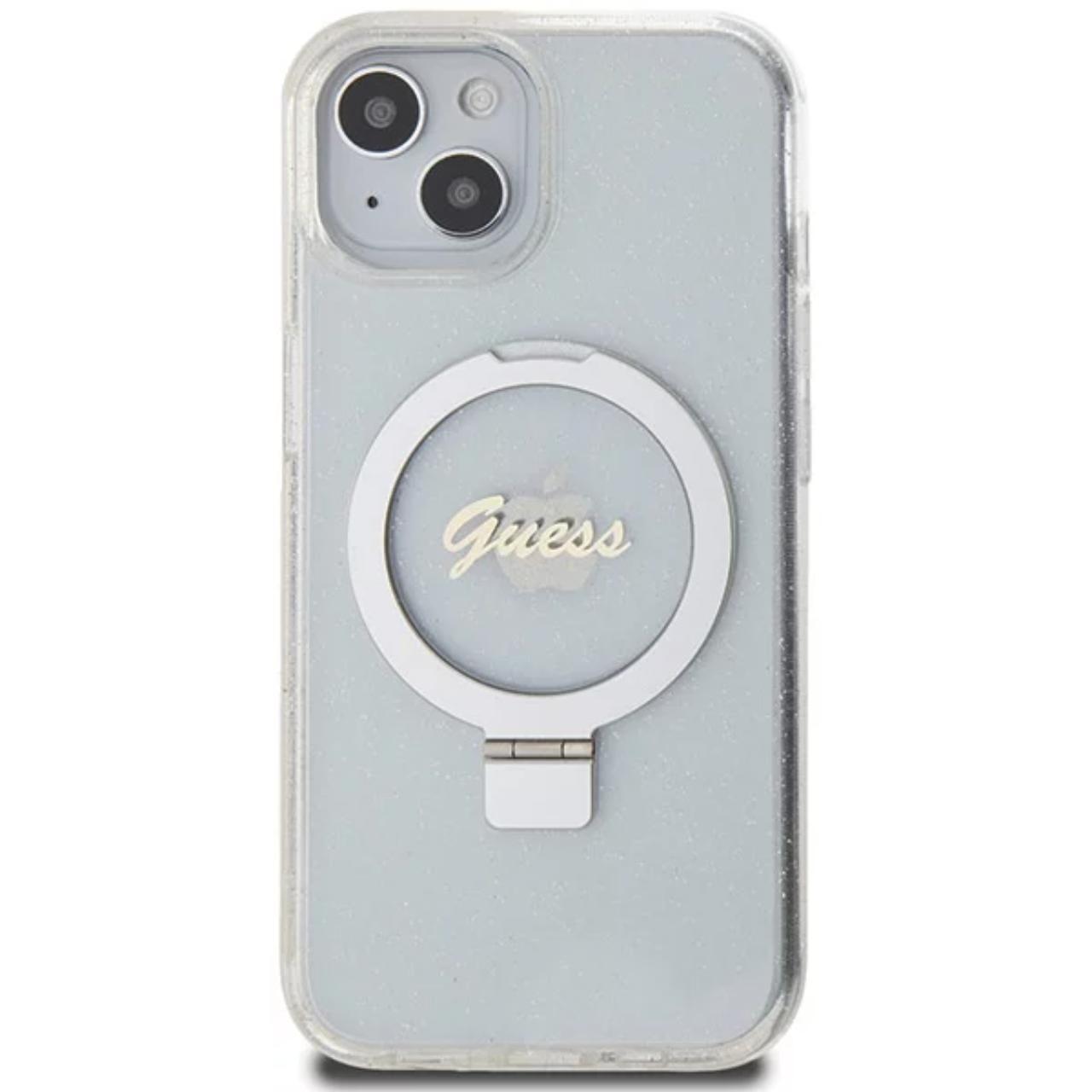 Guess Ring Stand Glitter MagSafe Case iPhone 15 Trasparente