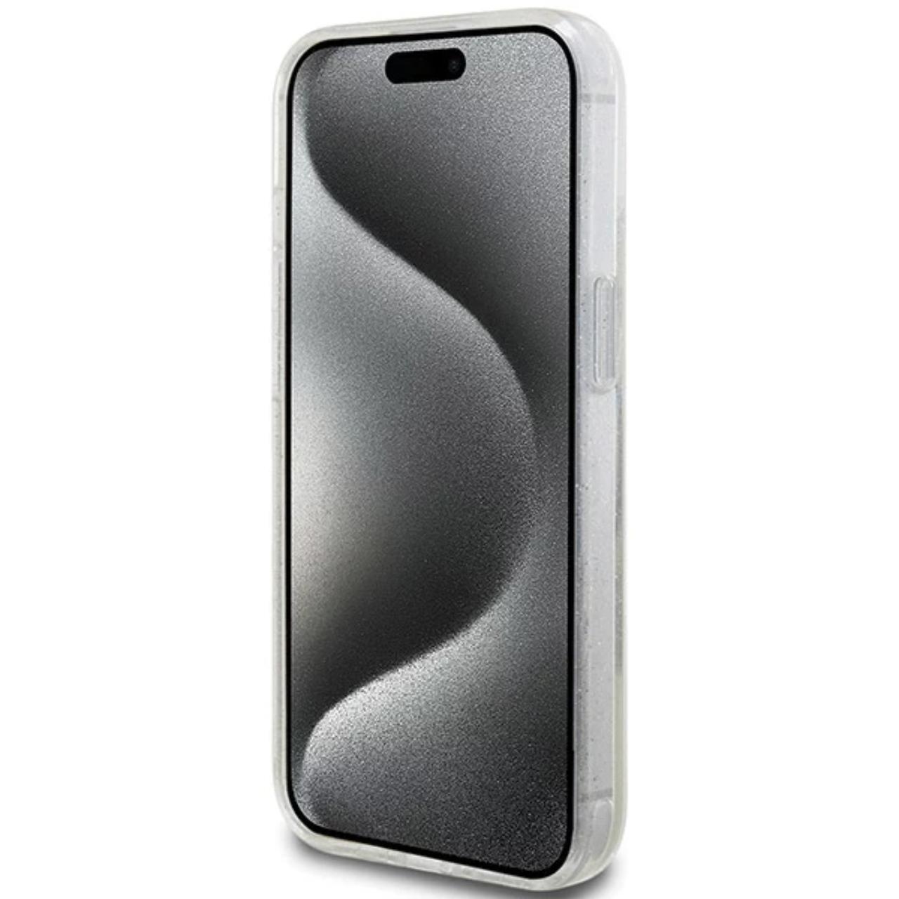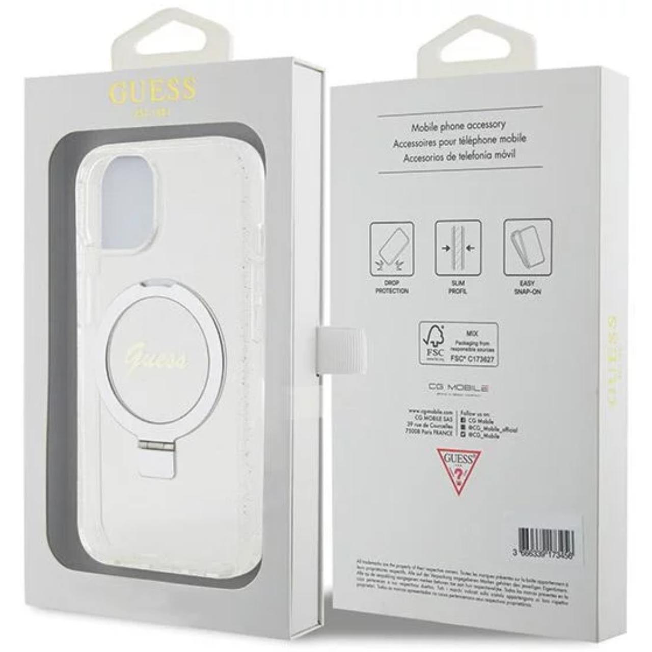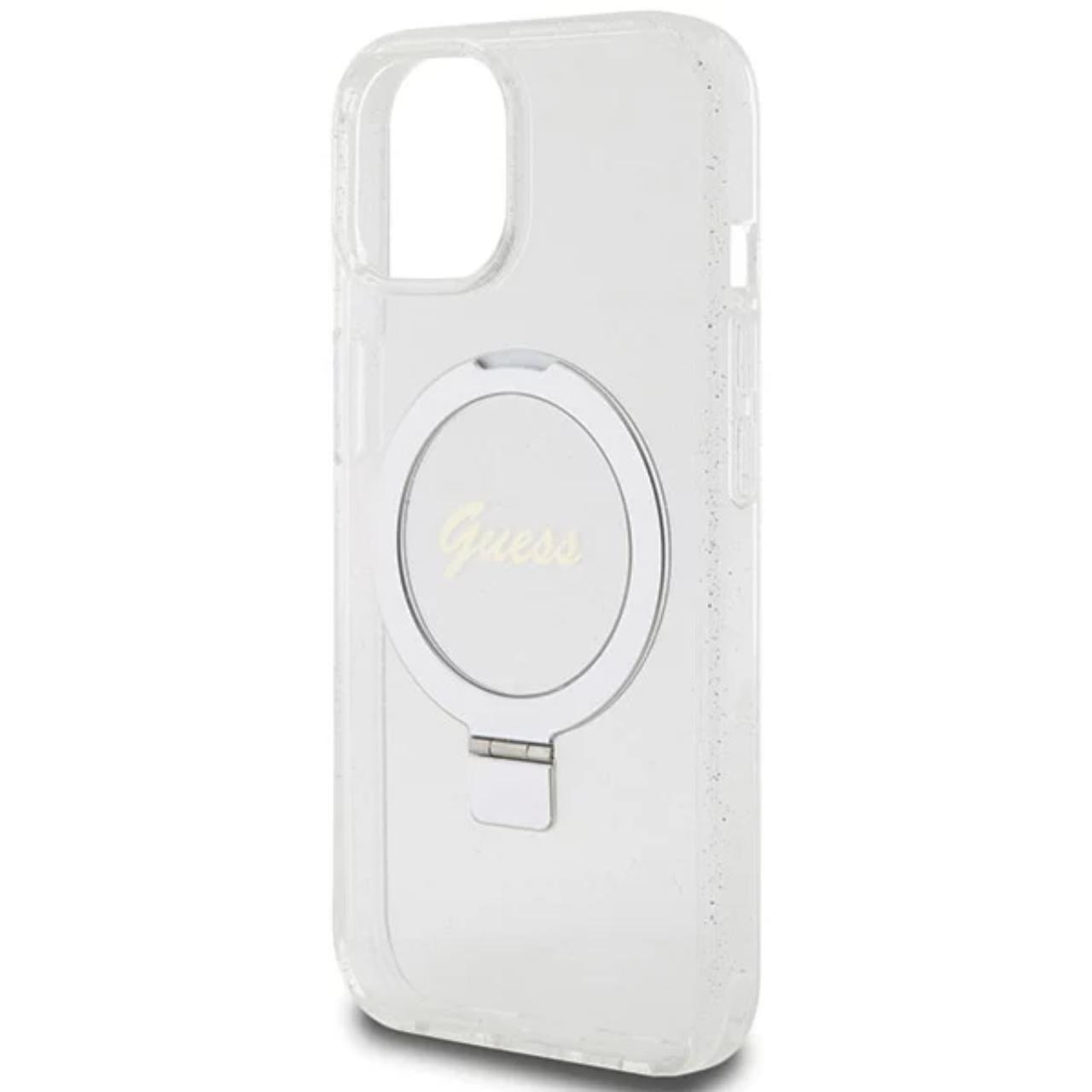 Guess Ring Stand Glitter MagSafe Case iPhone 15 Trasparente