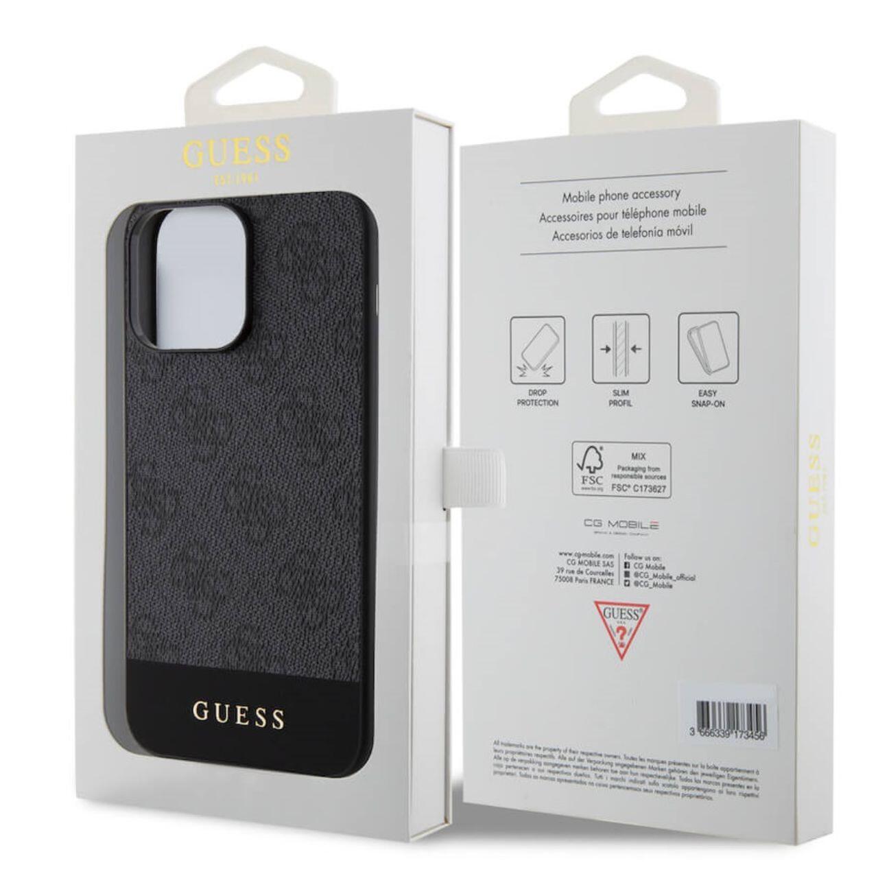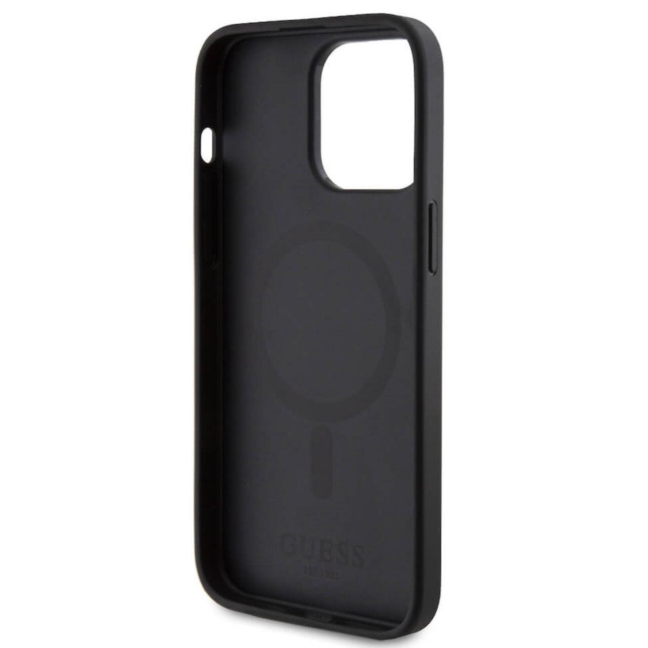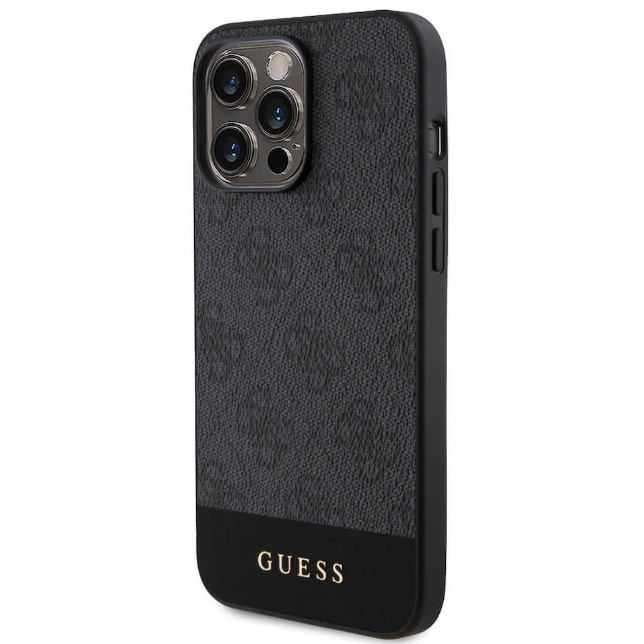 Custodia MagSafe con logo a strisce 4G Guess per iPhone 15 Pro nera