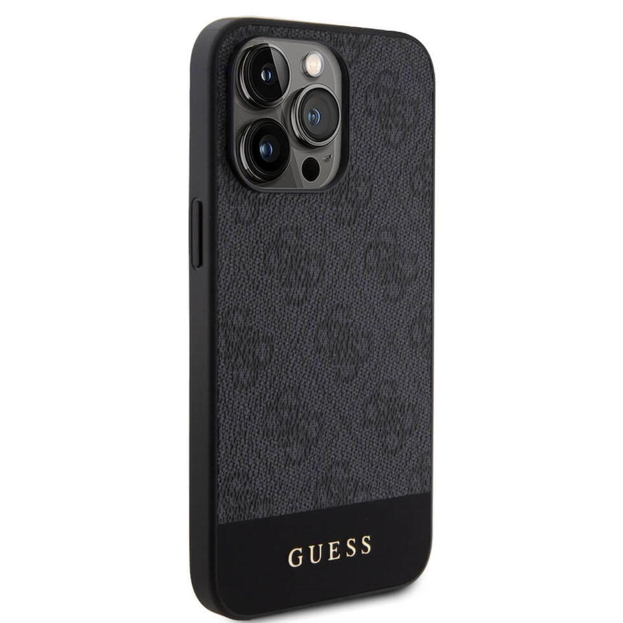 Custodia MagSafe con logo a strisce 4G per iPhone 15 Pro di Guess, È realizzato in un materiale piacevole al tatto, protegge perfettamente il telefono sugli angoli e l'obiettivo della fotocamera.
