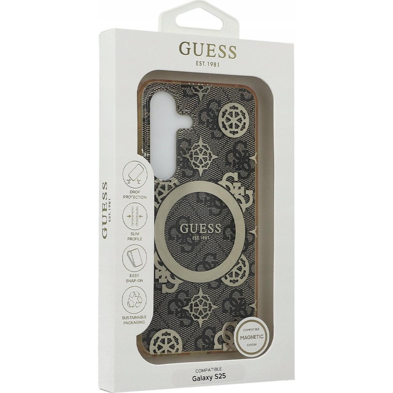 Custodia Guess 4G Gold Electroplated Peony Pattern per Samsung Galaxy S25 Marrone