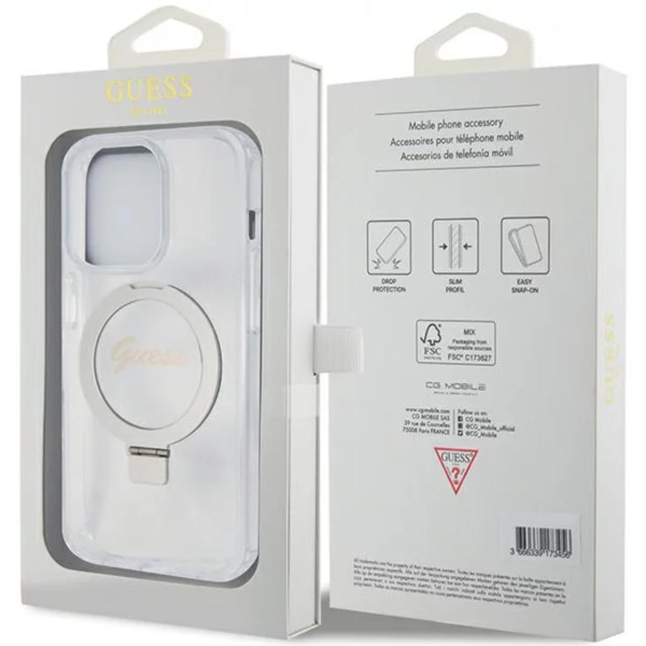 Guess Husa Ring Stand Glitter MagSafe iPhone 15 Pro Max Trasparente